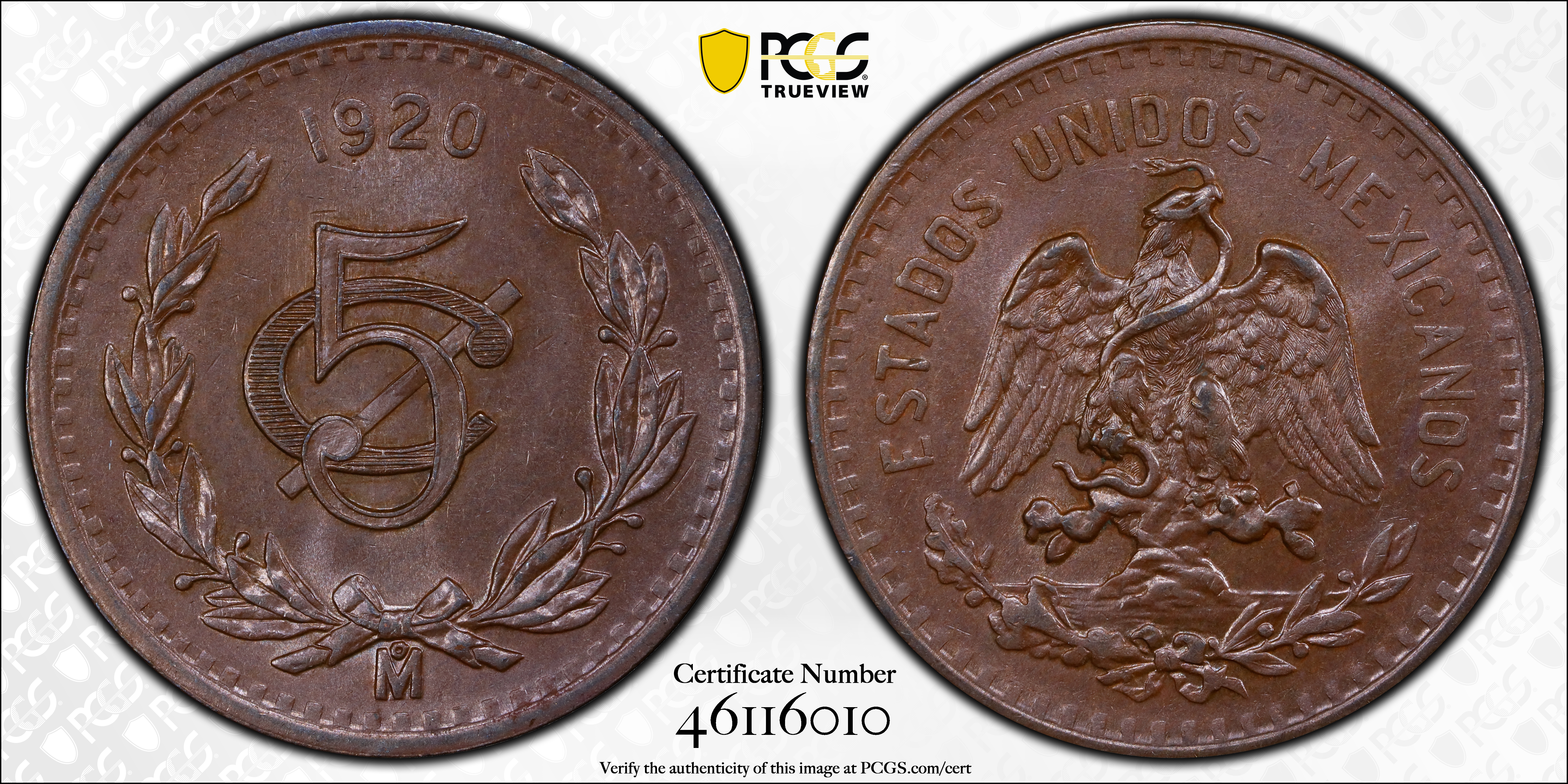 1920-Mo 5C, BN MS63BN Certification #46116010, PCGS #167579