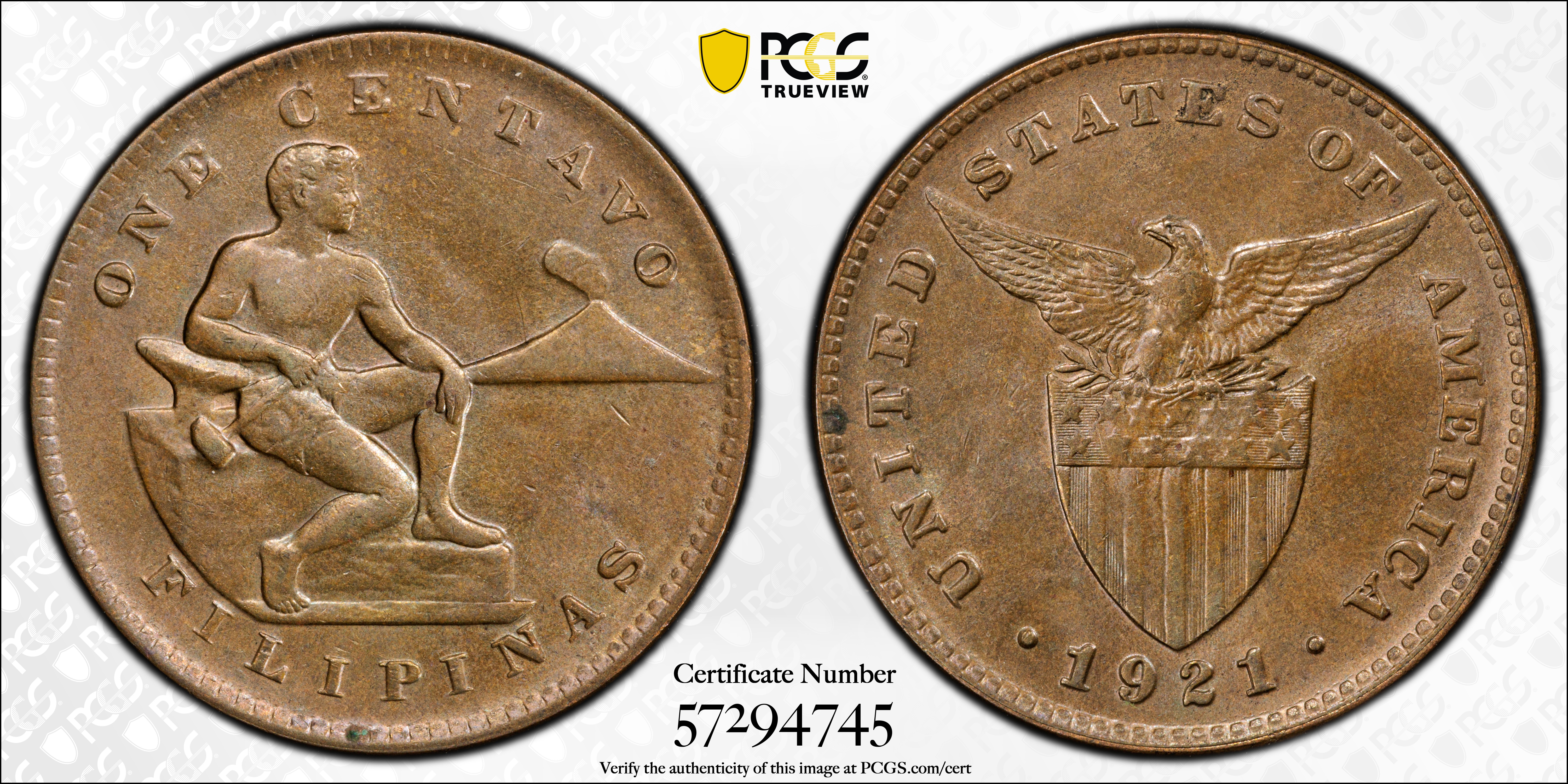 1921 1C, BN MS63BN Certification #57294745, PCGS #90093