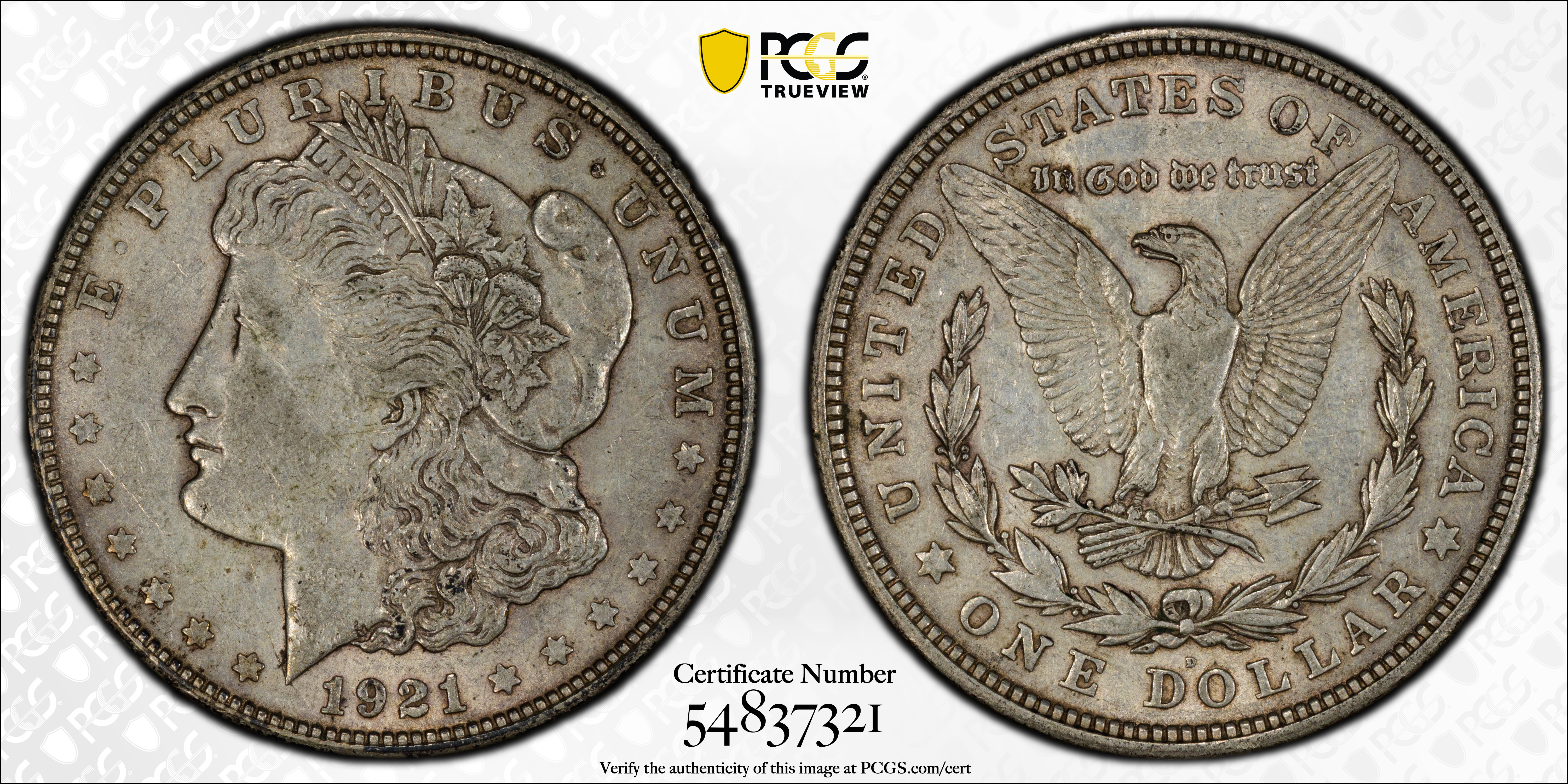 1921-D $1 AU53 Certification #54837321, PCGS #7298
