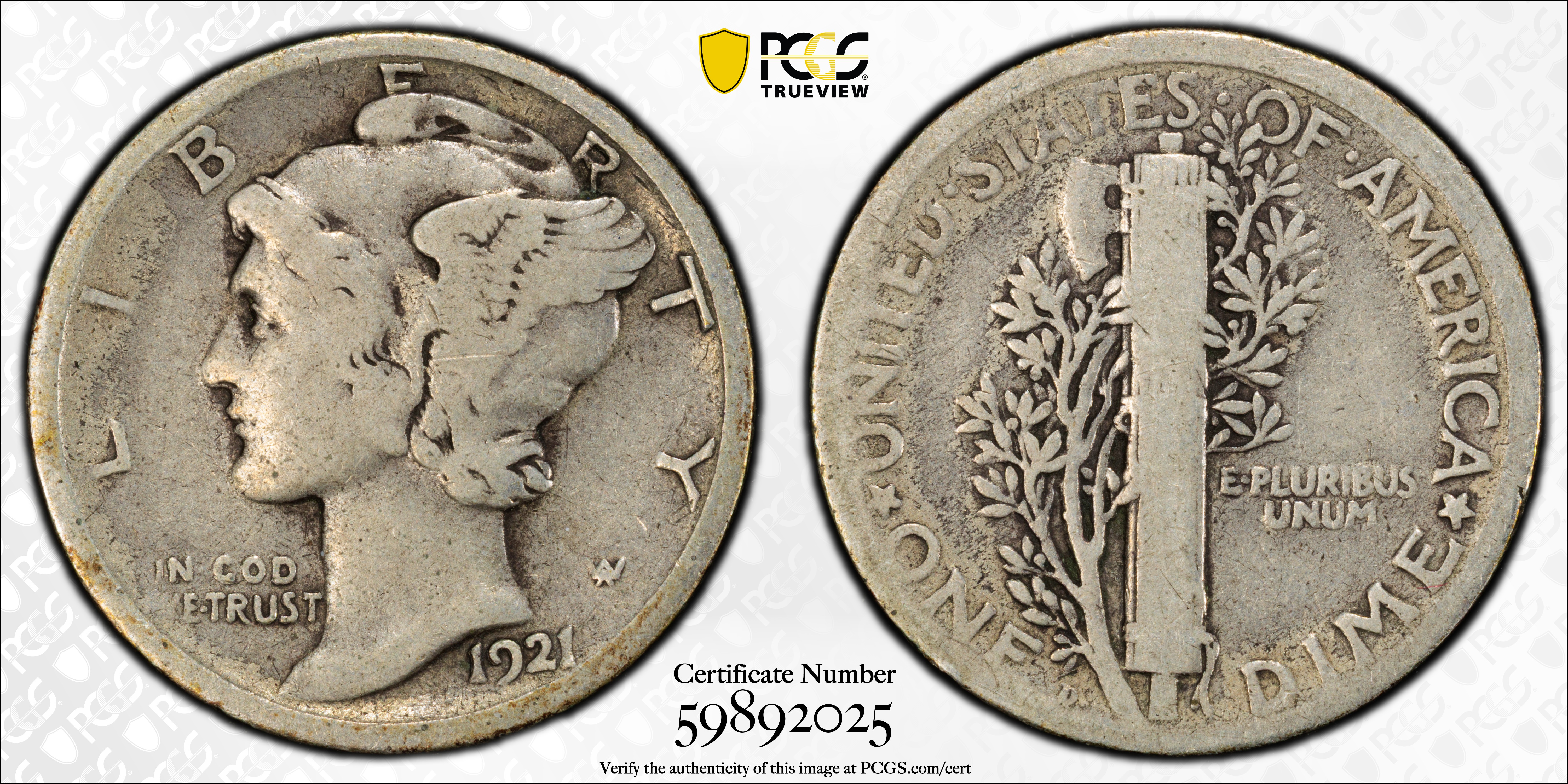 1921-D 10C VG10 Certification #59892025, PCGS #4936