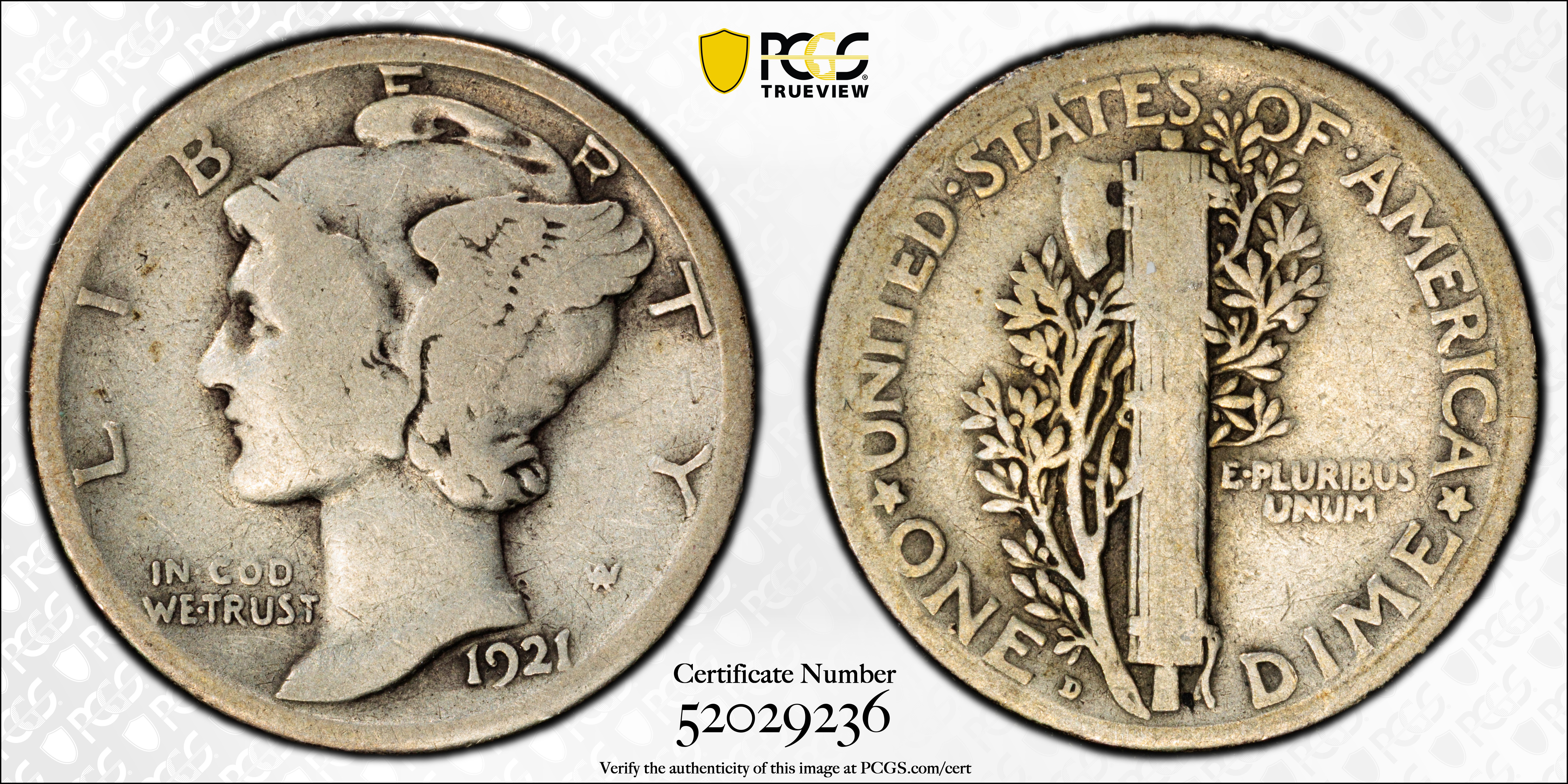 1921-D 10C G6 Certification #52029236, PCGS #4936