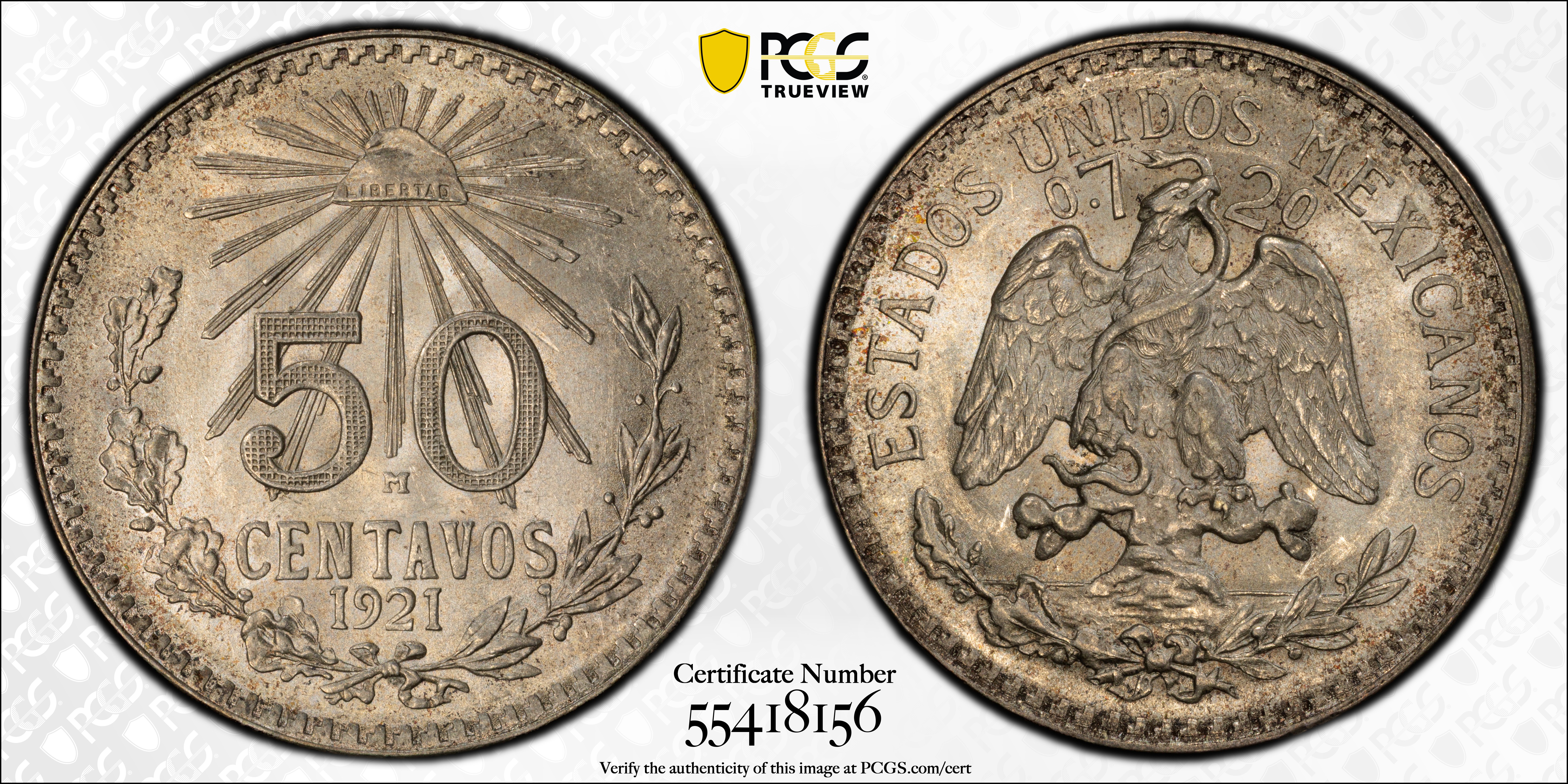 1921-M 50C KM-447 MS65 Certification #55418156, PCGS #525679