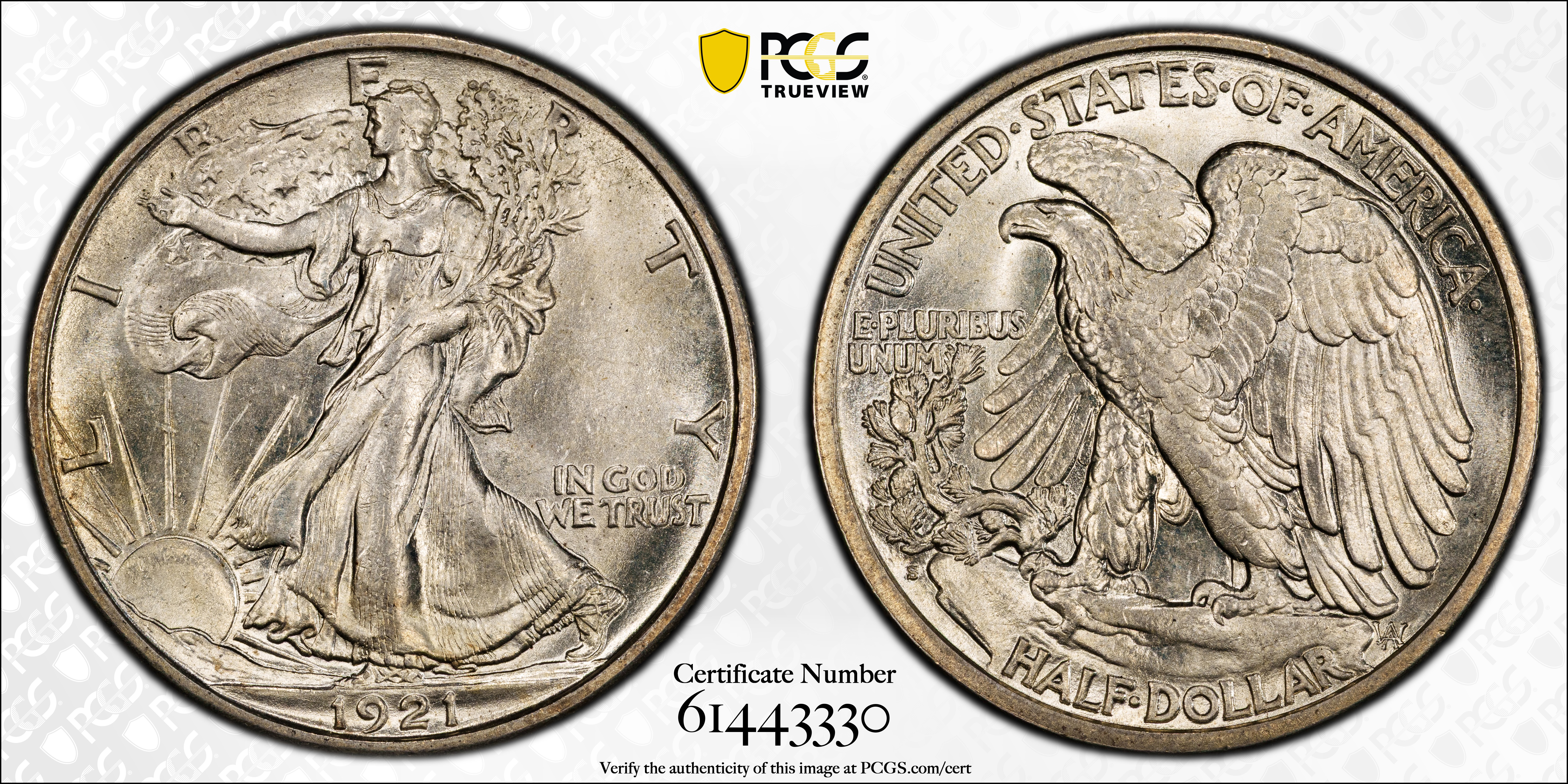 1921-S 50C MS63 Certification #61443330, PCGS #6585