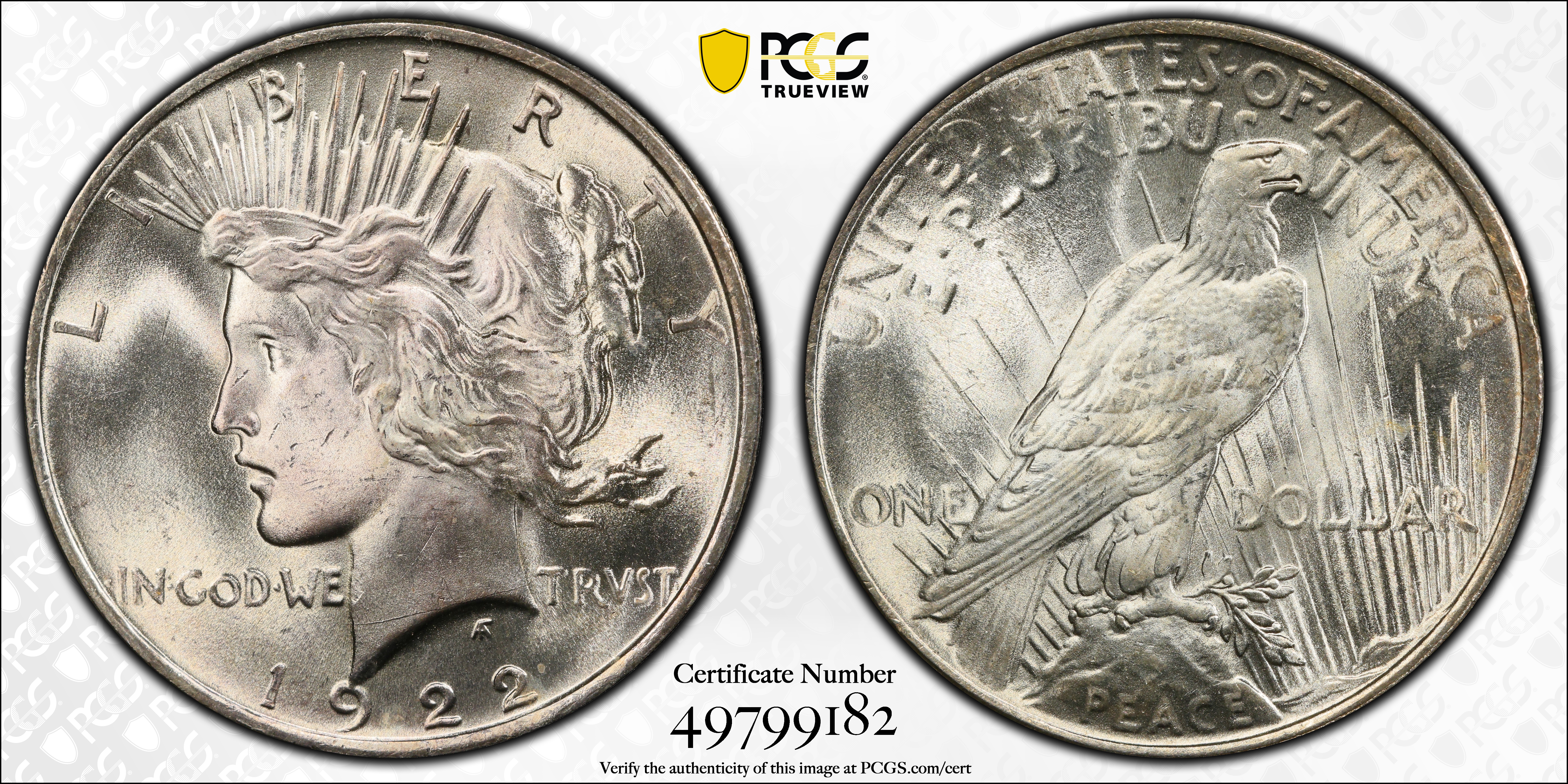 Mint State grades: In Mint State the 1922 is exceedingly common in all grades MS-60, MS-61, etc., through MS-65 and even beyond.