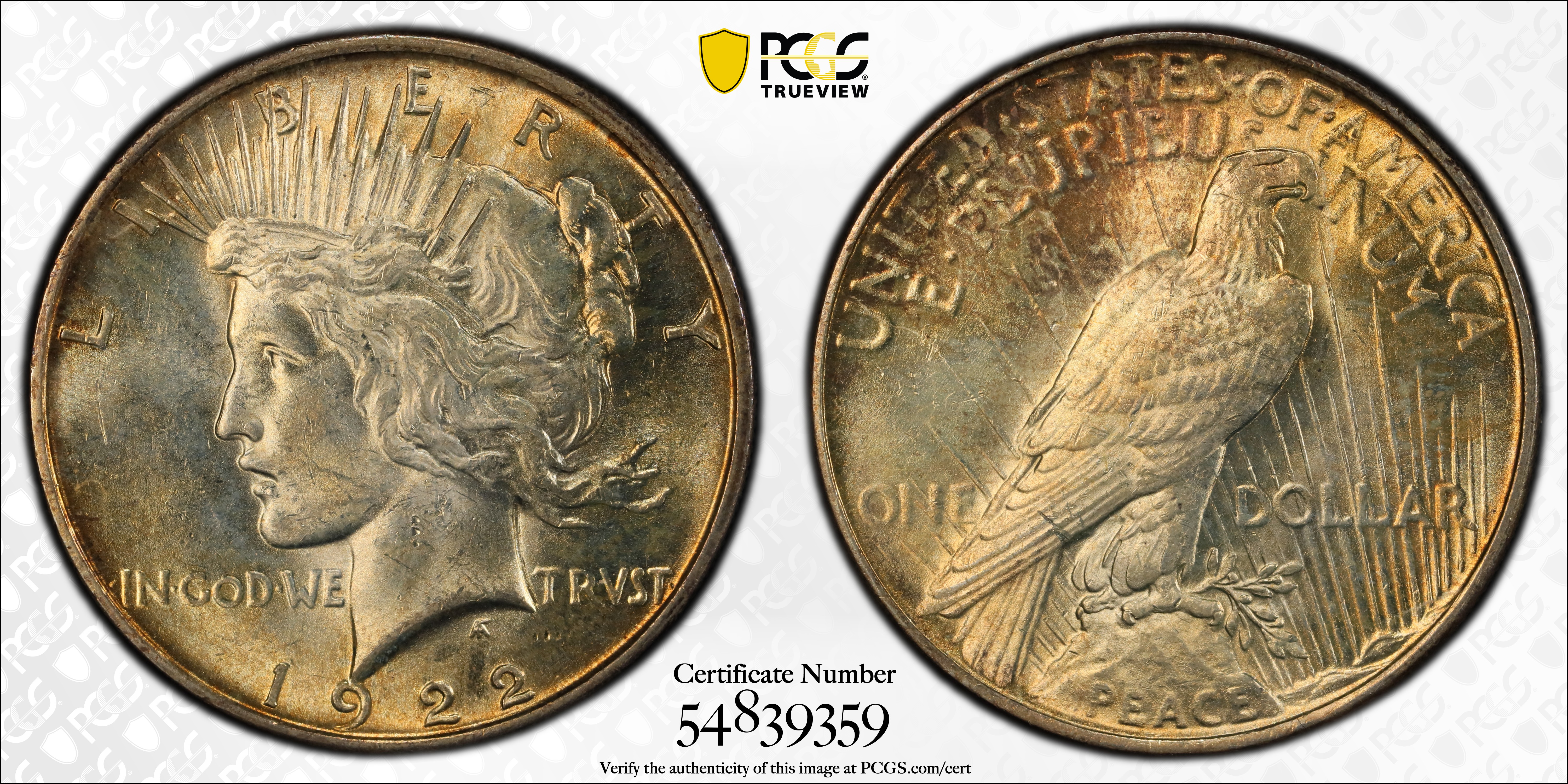 1922 $1 MS62 Certification #54839359, PCGS #7357