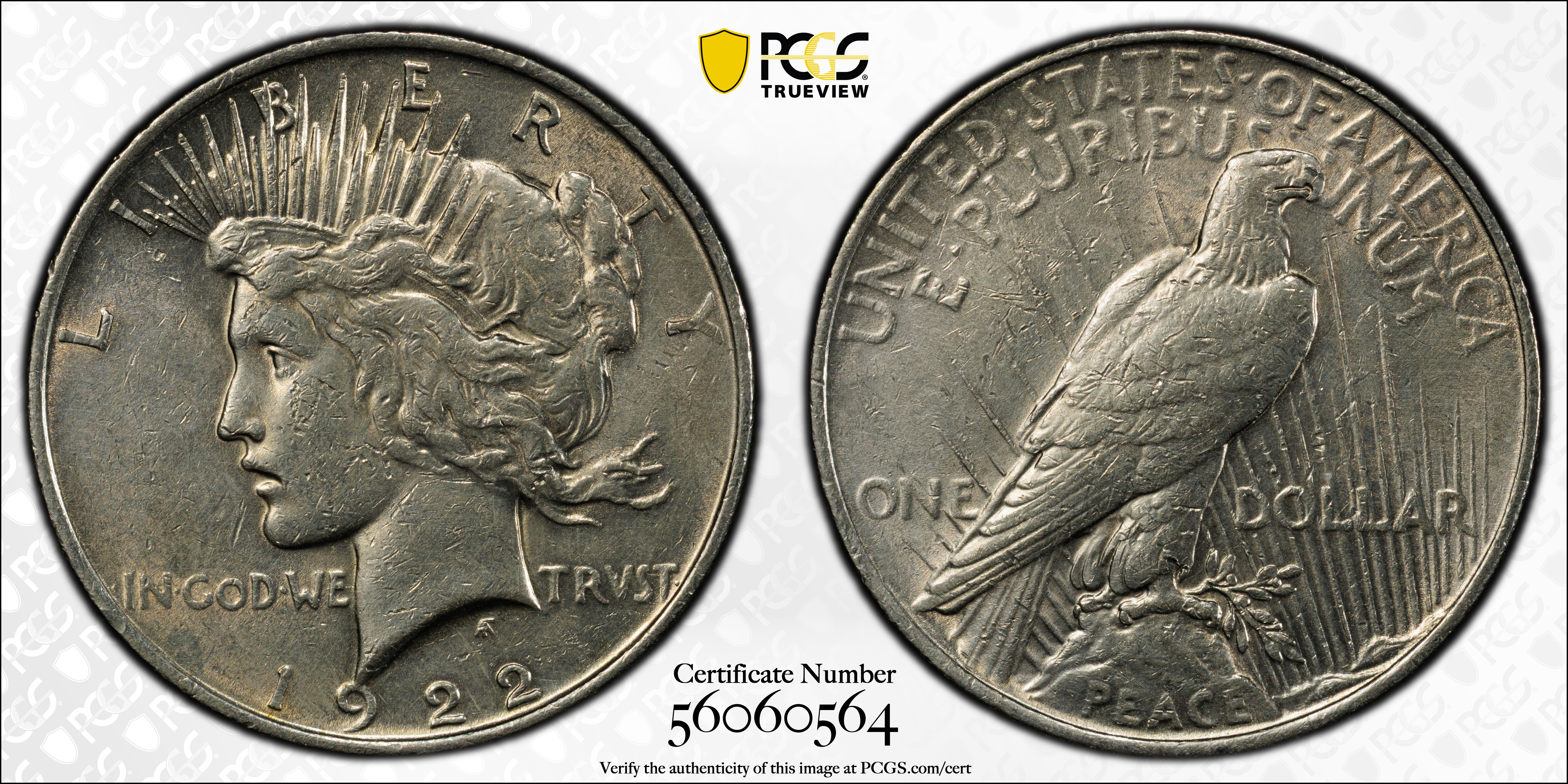 This and the 1923, 1924, and 1925 Philadelphia Mint issues constitute the four most common Peace silver dollars; 1922 is slightly scarcer in higher grades than the other three.