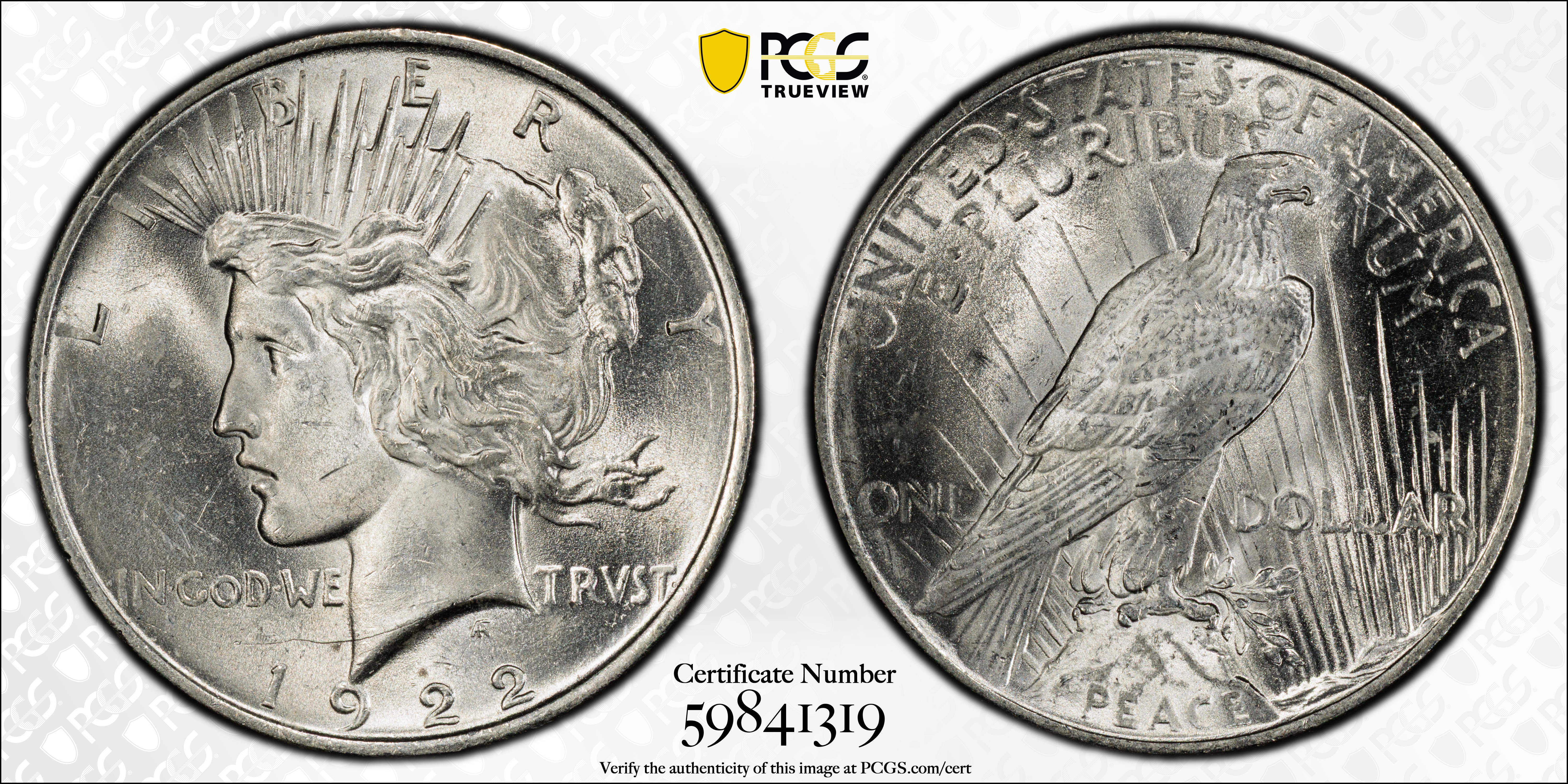 1922 $1 MS62 Certification #59841319, PCGS #7357