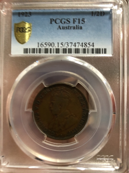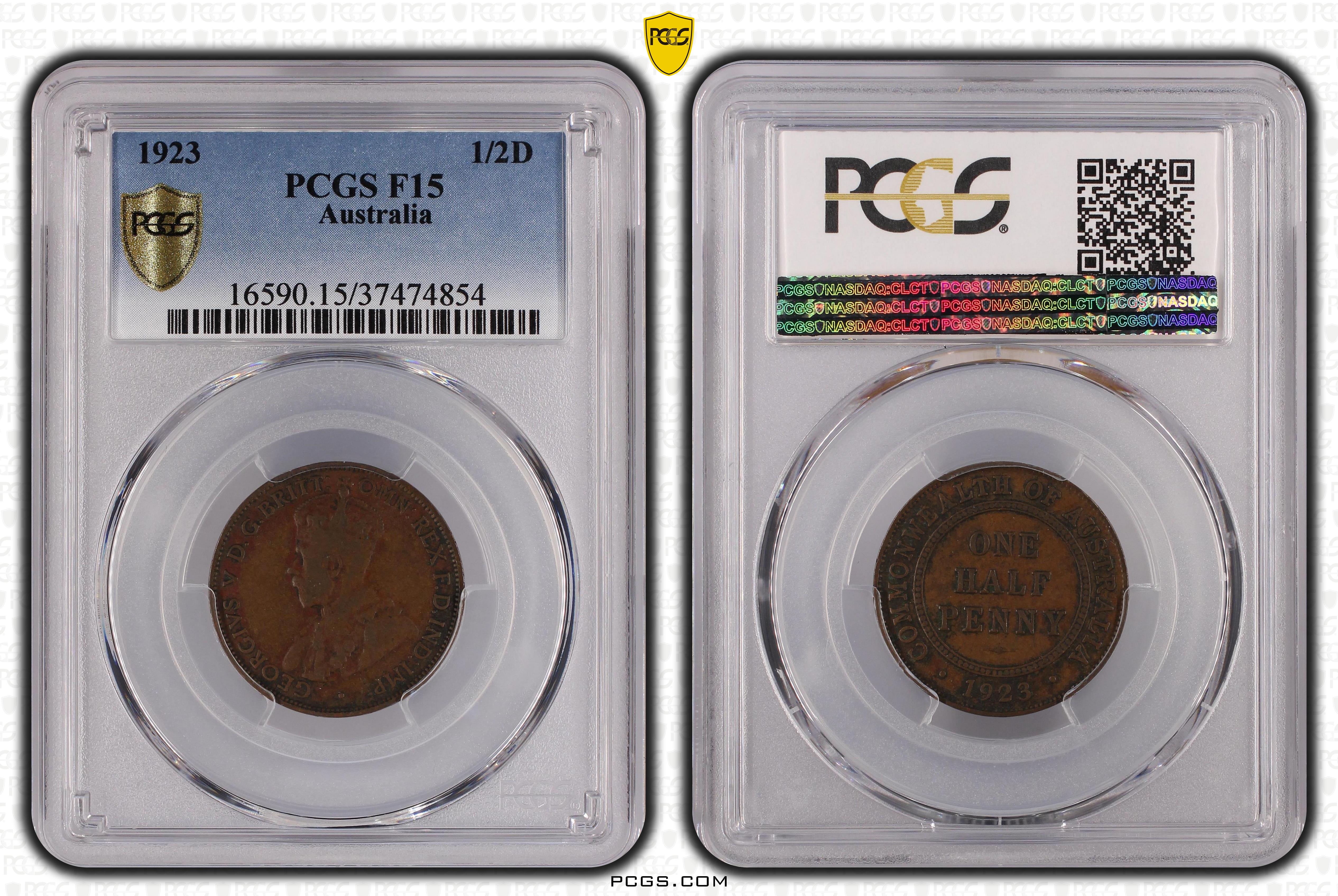 1923 1/2D, BN F15BN Certification #37474854, PCGS #16590