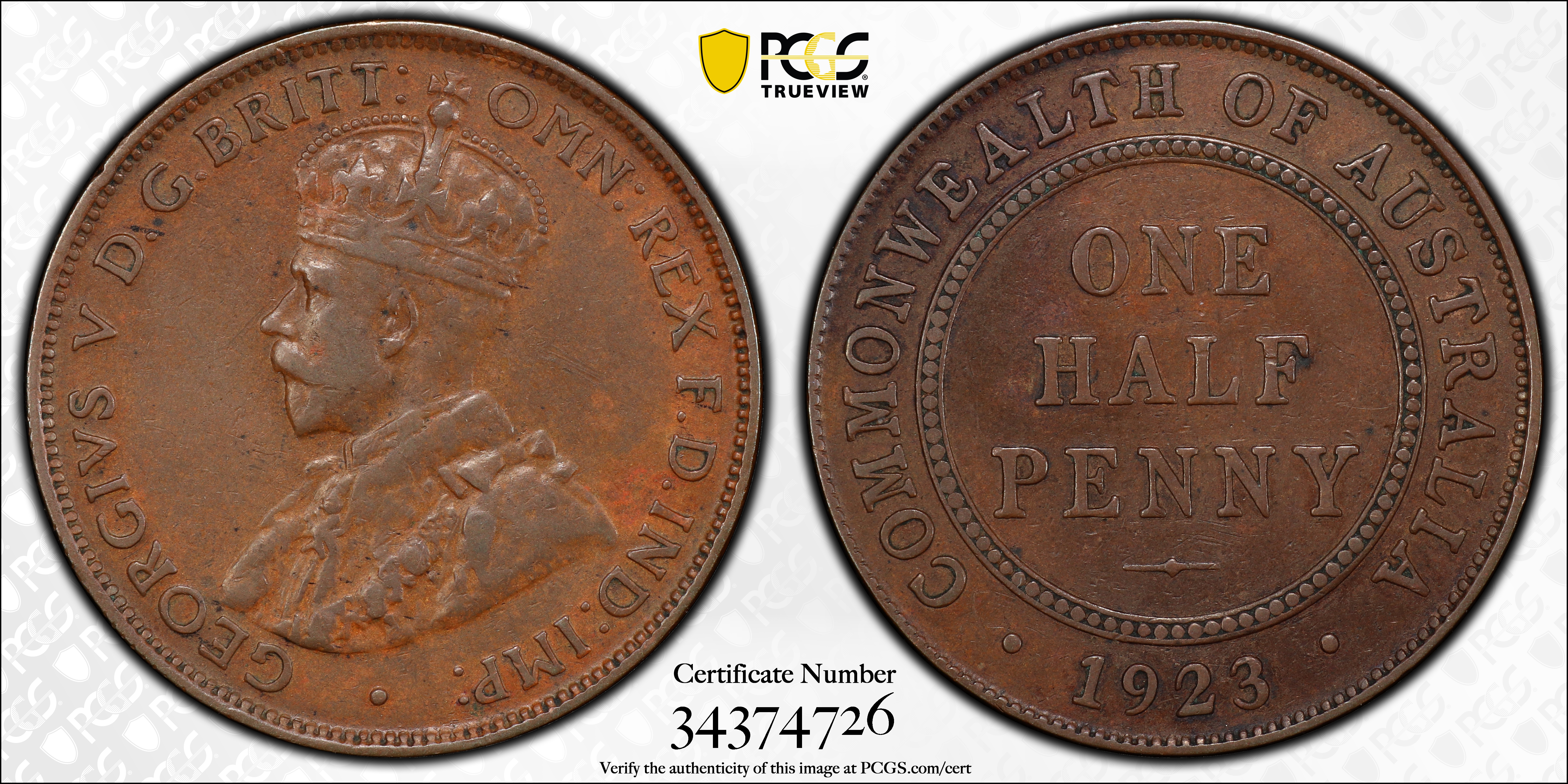1923 1/2D, BN XF40BN Certification #34374726, PCGS #16590