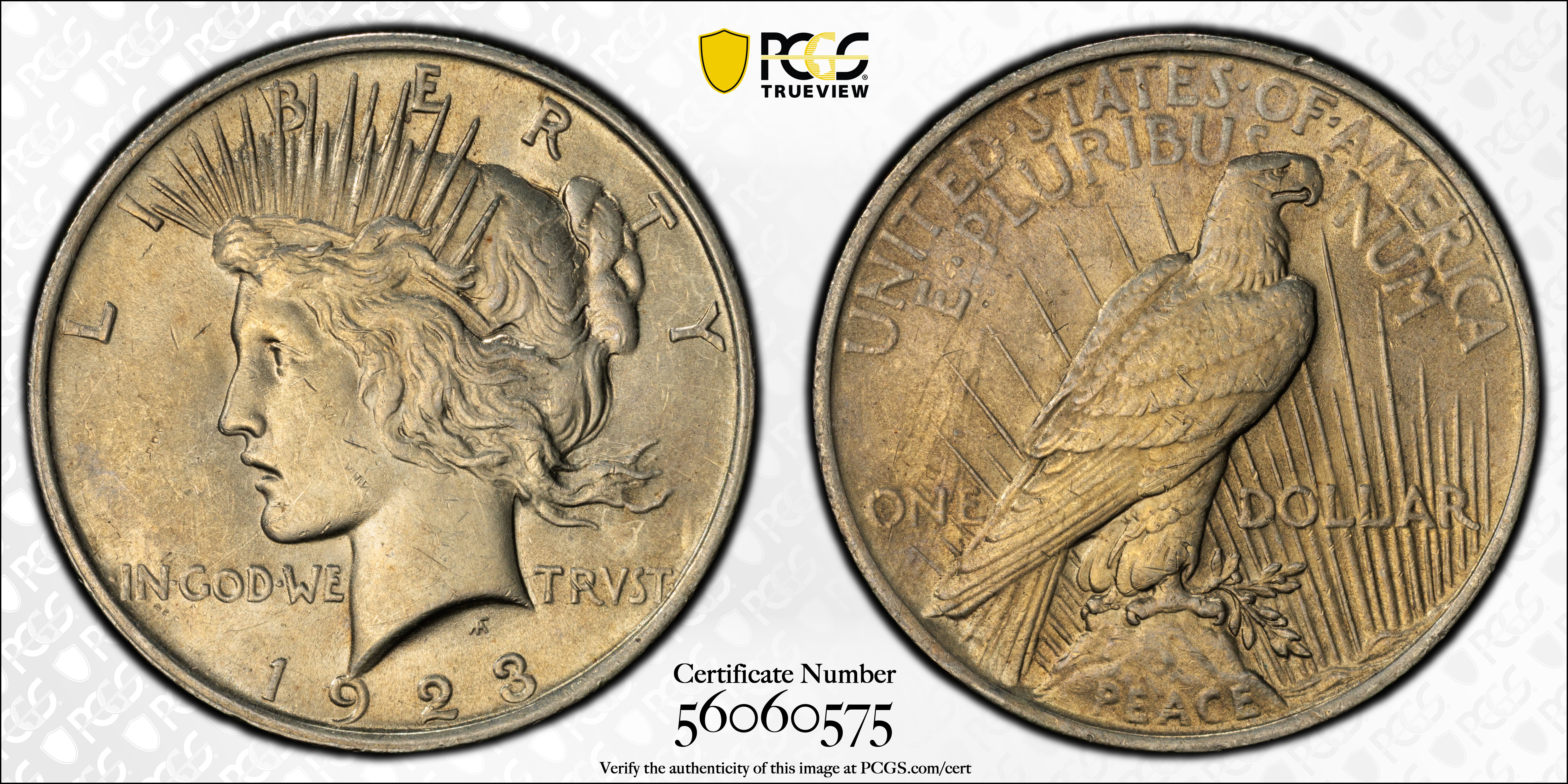 Mint State grades: The 1923 Peace dollar is very plentiful in Mint State, in all grades from MS-60 through MS-65 or even higher. In fact, it may well be the commonest of all Uncirculated Peace dollars.