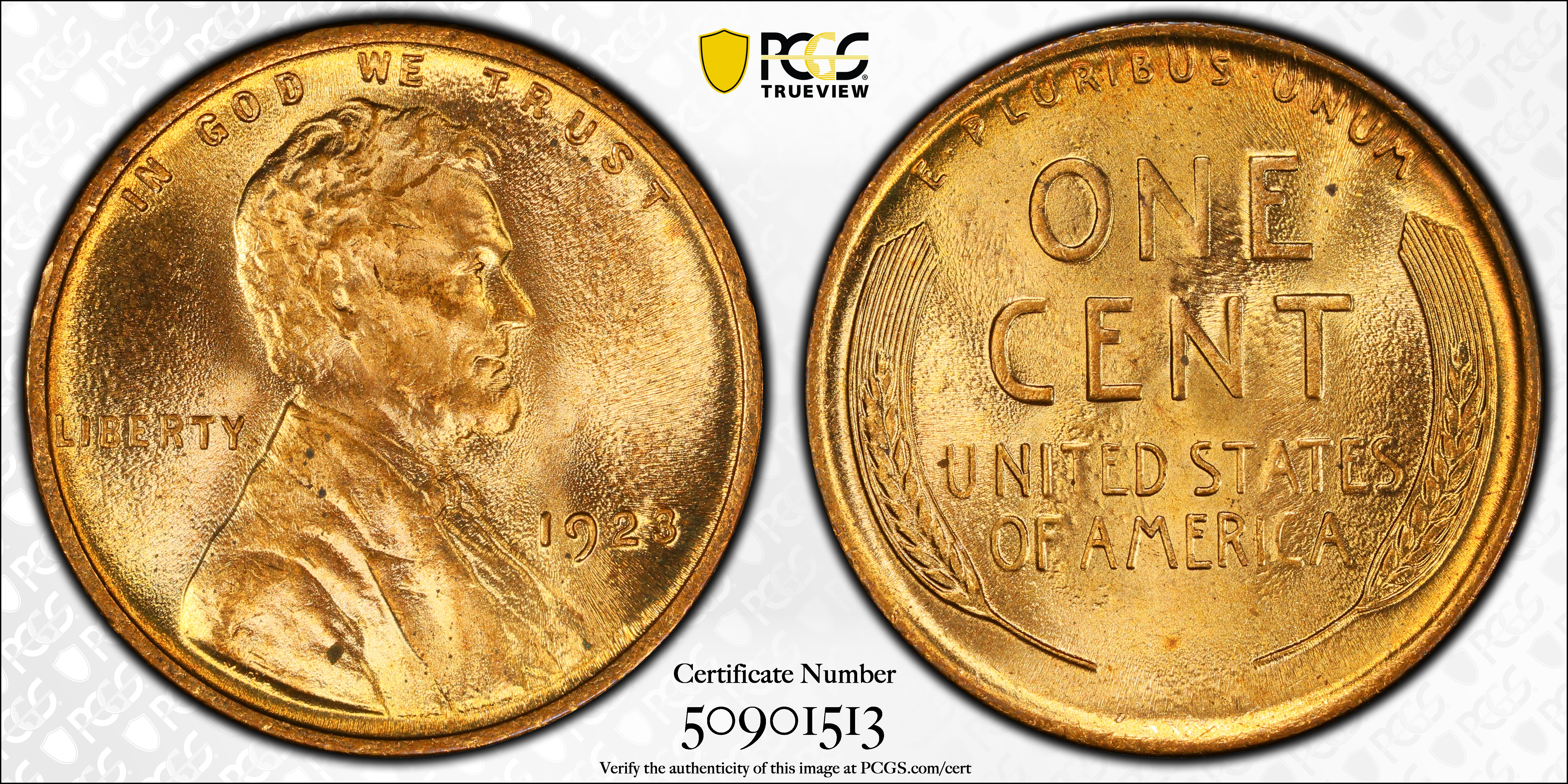 1923 1C, RD MS66RD Certification #50901513, PCGS #2545
