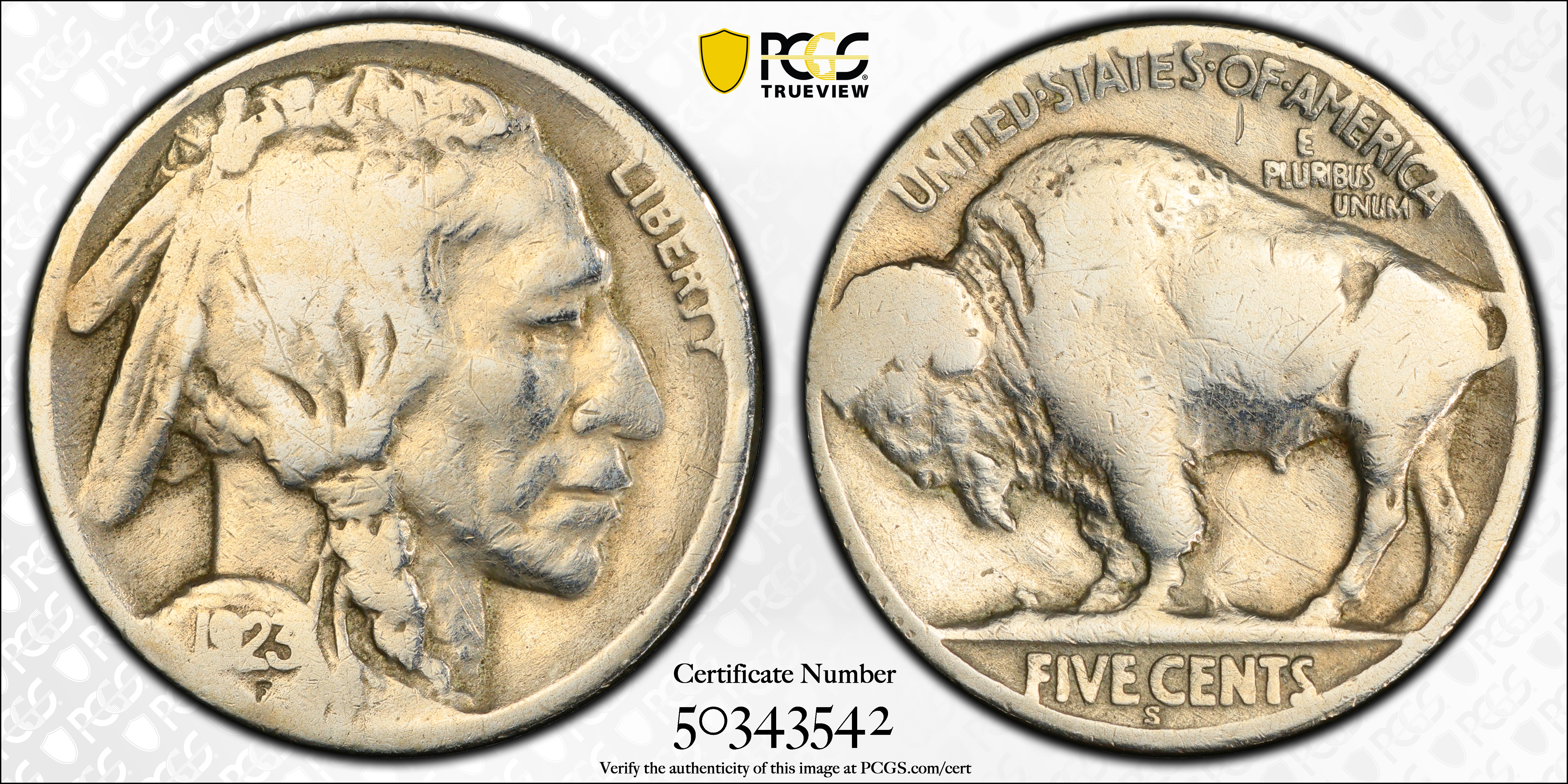 The 1923-S is scare in circulated grades, rare in mint state, and extremely rare in Gem condition. In Gem MS65 or better condition (there are only a couple of MS66s and none better), this is one of the major rarities of the series. Only the 1920-S, 1925-S, 1926-S, and 1927-S are rarer. Strike can be a major problem with this issue and in the early 1970s I actually saw an original roll (40 coins) of strictly uncirculated coins of this date and every coin was as flat as a pancake...literally...with no horn or tail detail on the buffalo whatsoever! A Gem MS65 coin has to be a decent strike and that's the major stumbling block. Most examples have a subdued light frosty luster.