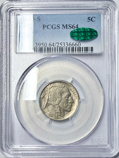 1923-S 5C MS64 Certification #25336660, PCGS #3950