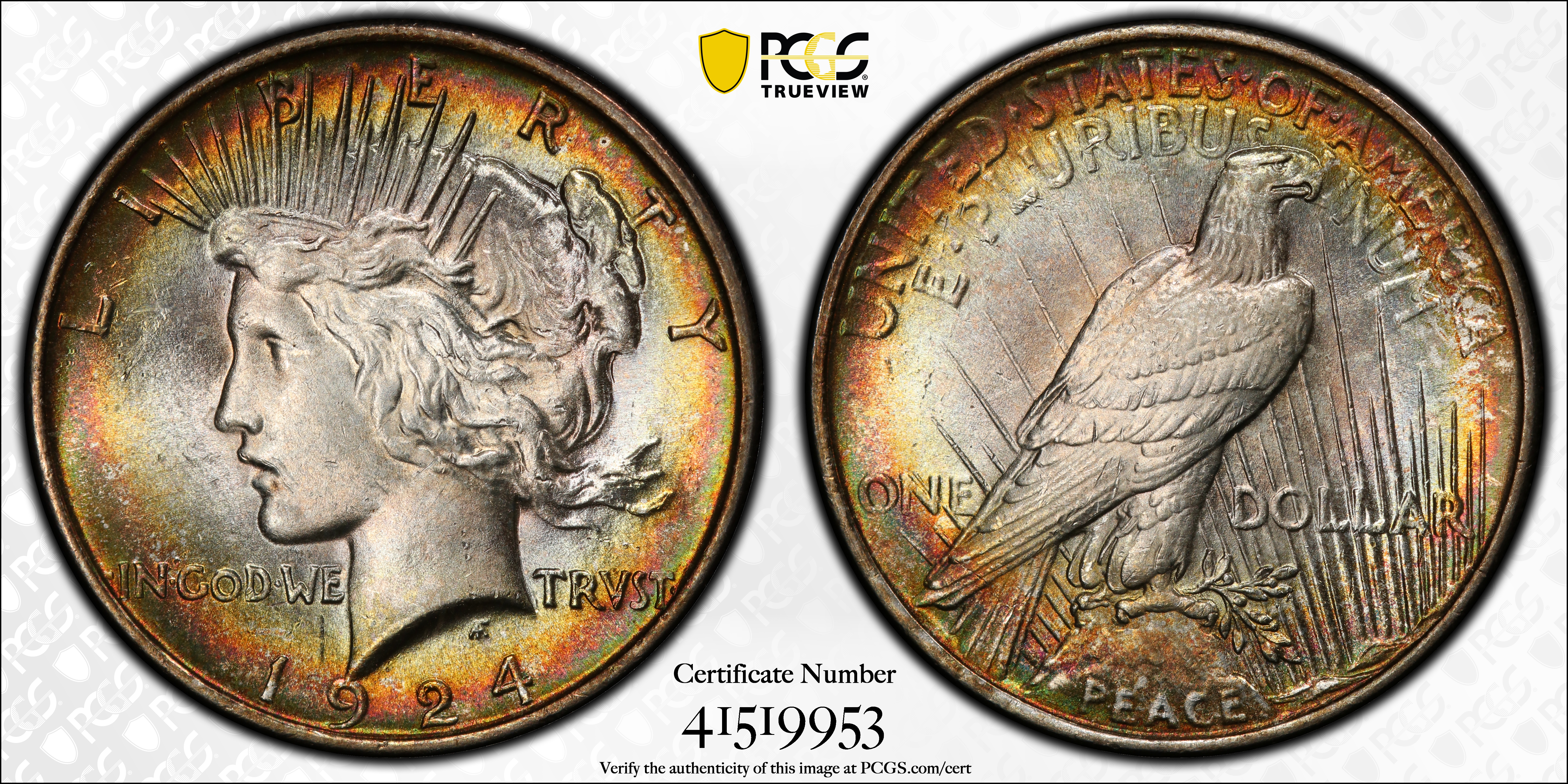 Mint State grades: Many 1924 Peace dollars are above average in striking quality and have attractive, satiny lustre.