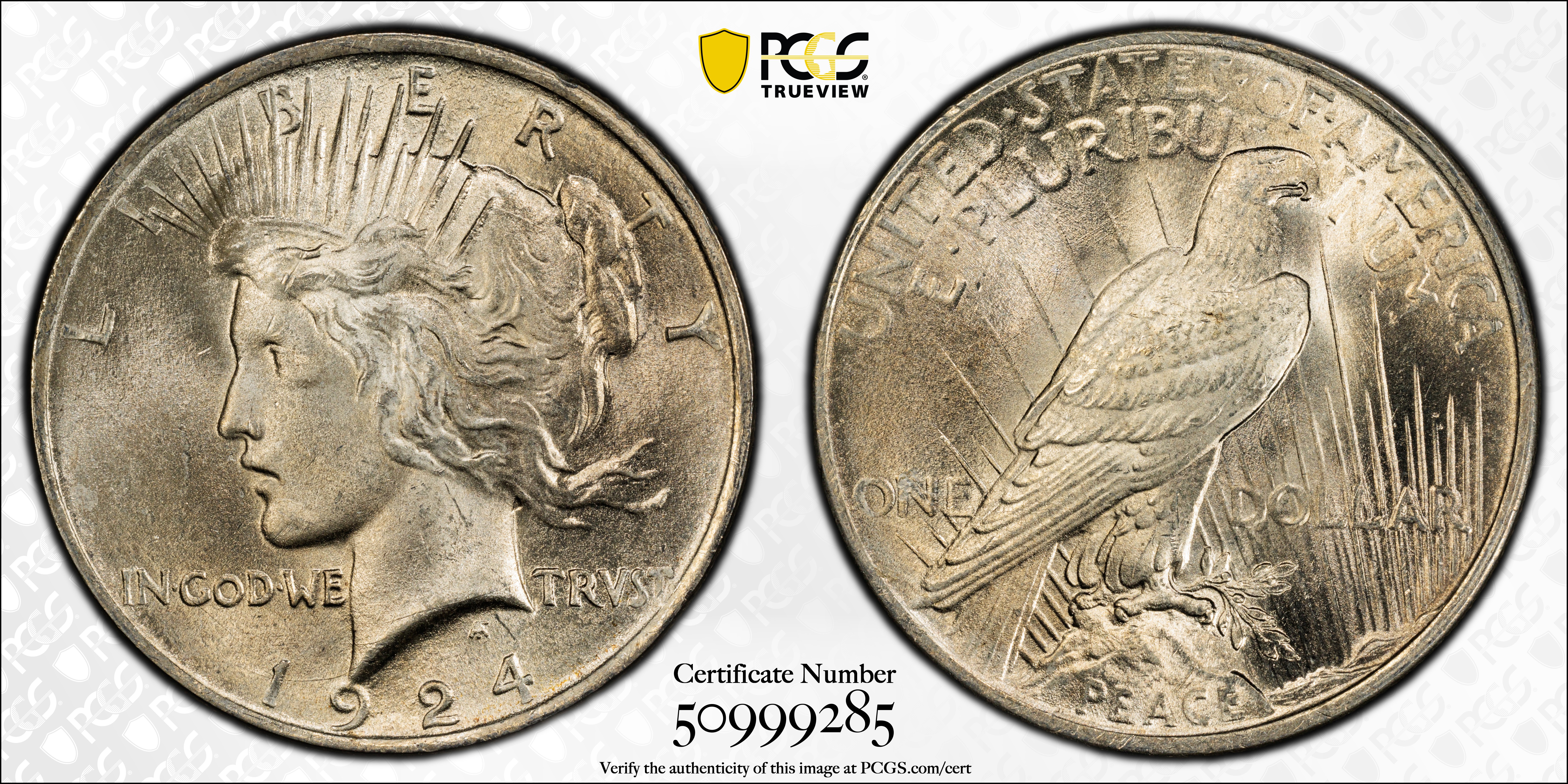Mint State grades: Many 1924 Peace dollars are above average in striking quality and have attractive, satiny lustre.