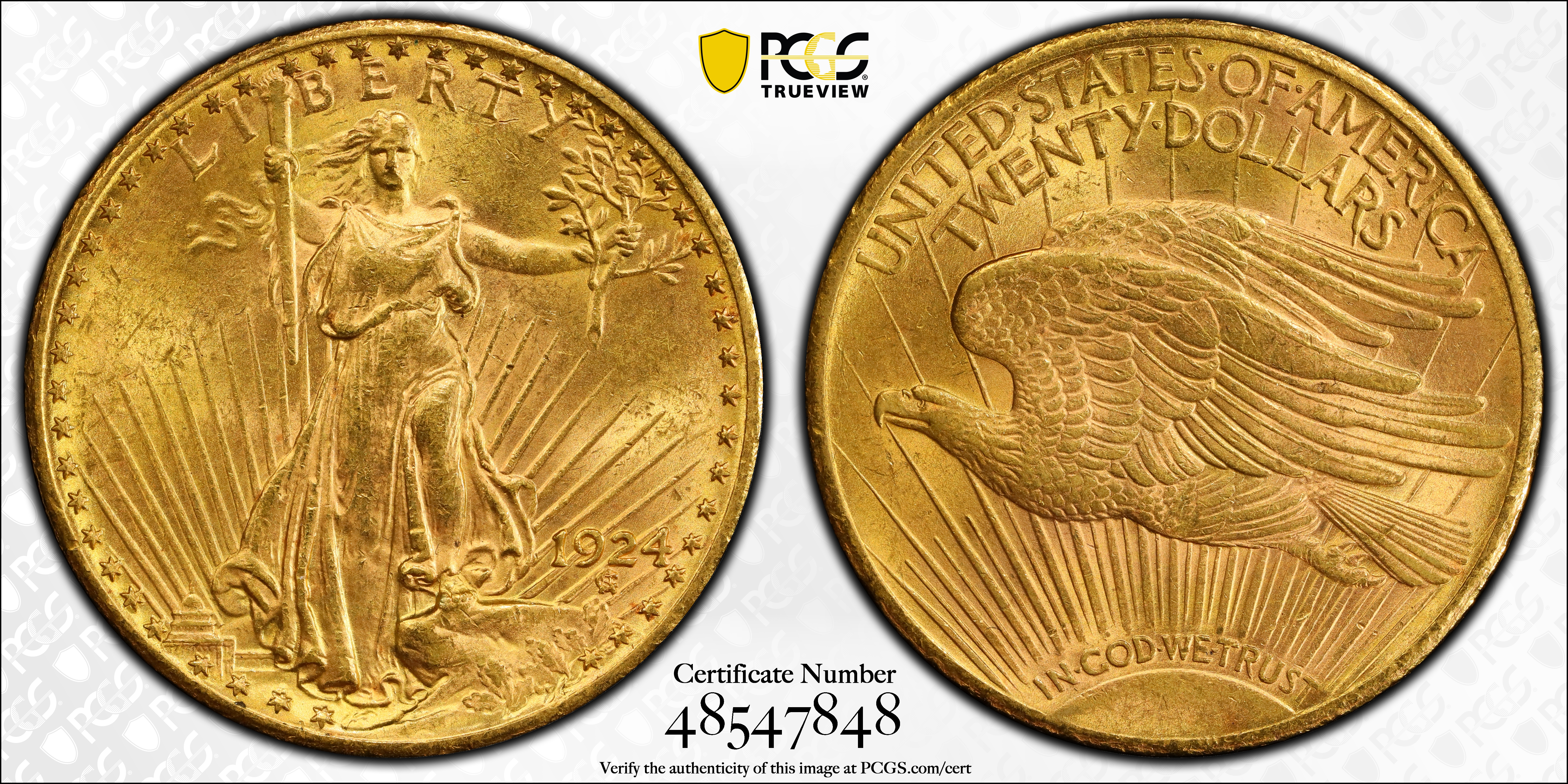 1924 $20 MS63 Certification #48547848, PCGS #9177