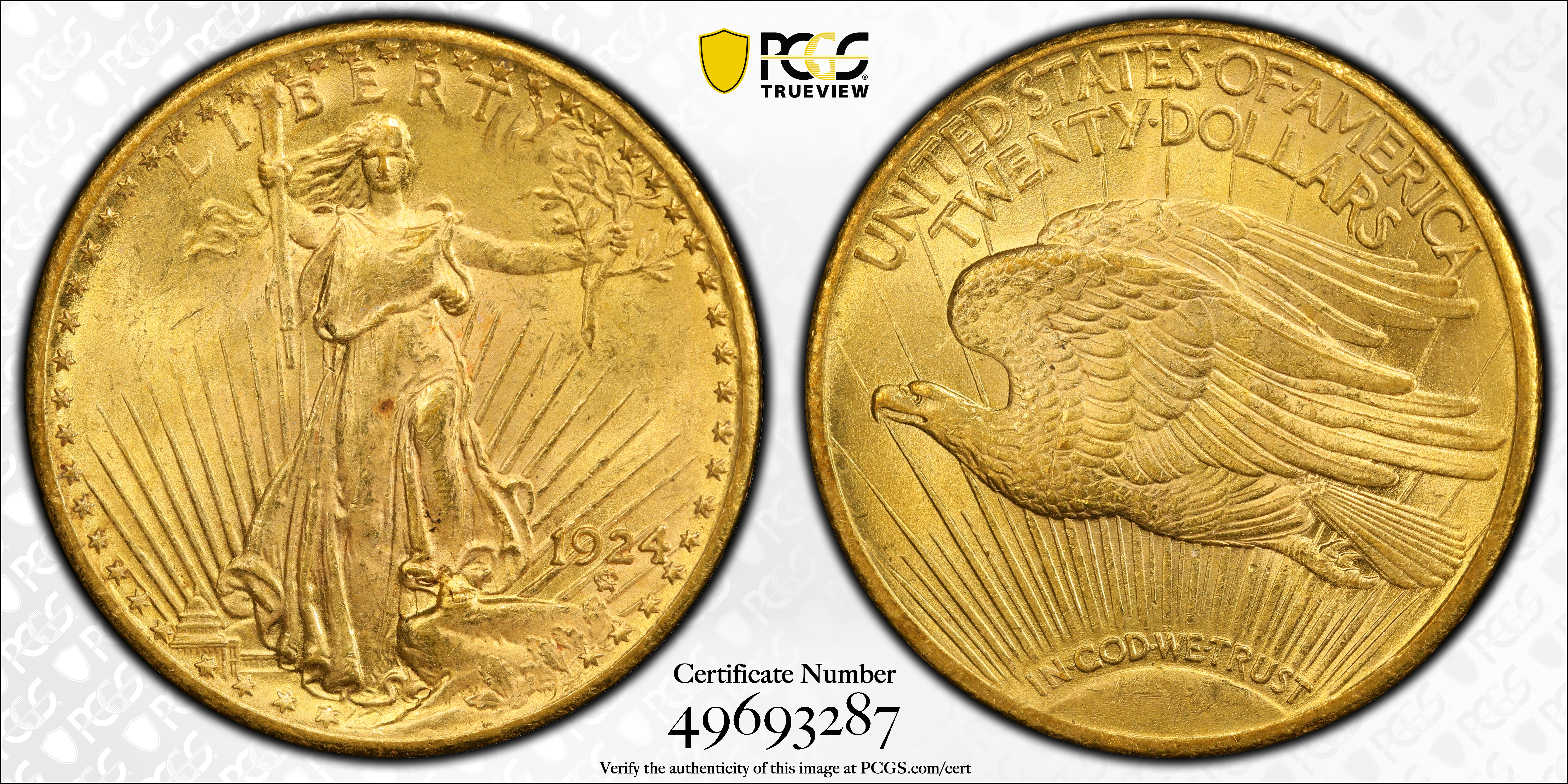 1924 $20 MS64 Certification #49693287, PCGS #9177