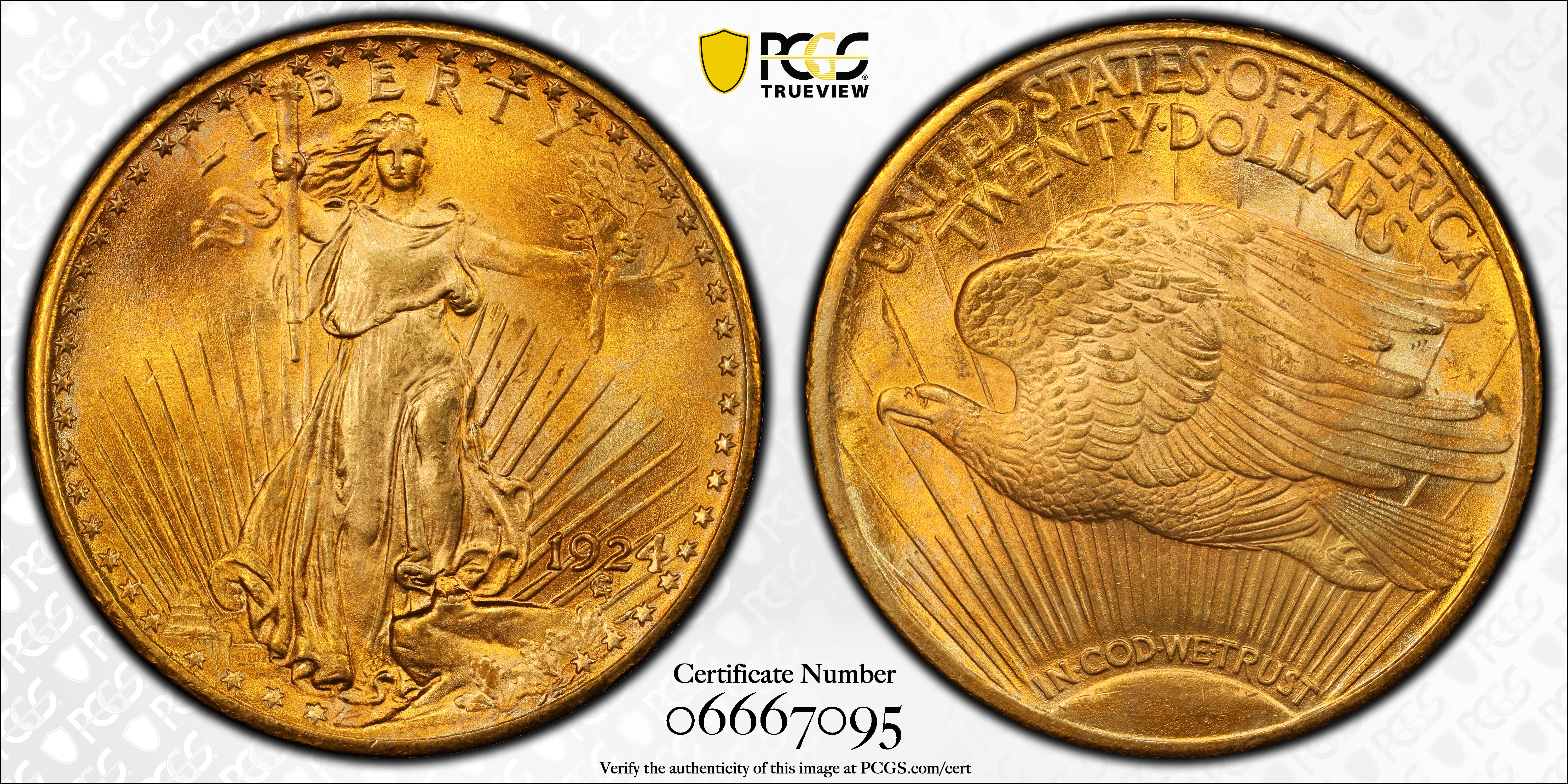 1924 $20 MS65 Certification #06667095, PCGS #9177