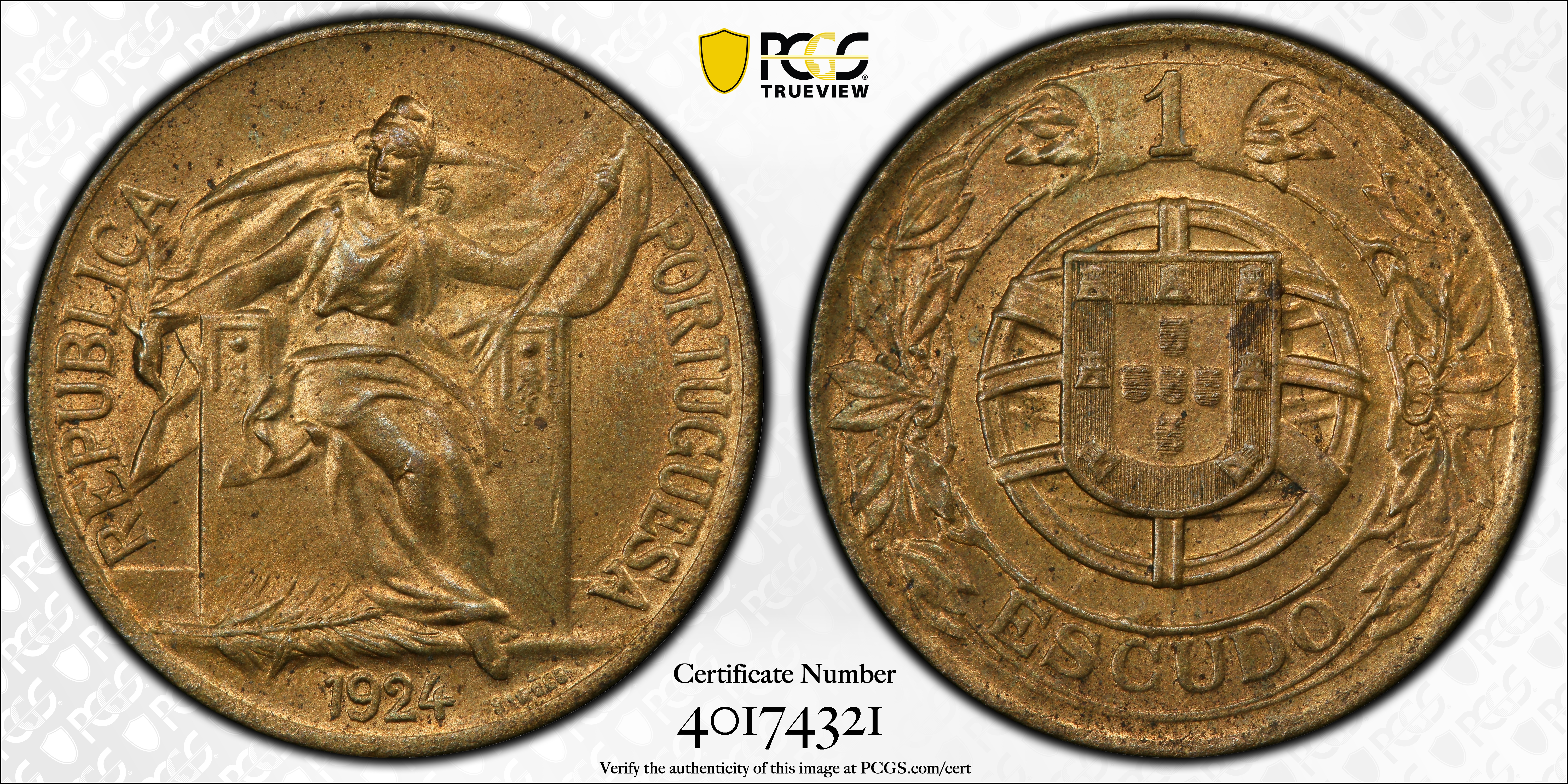 1924 Escudo MS64 Certification #40174321, PCGS #146314