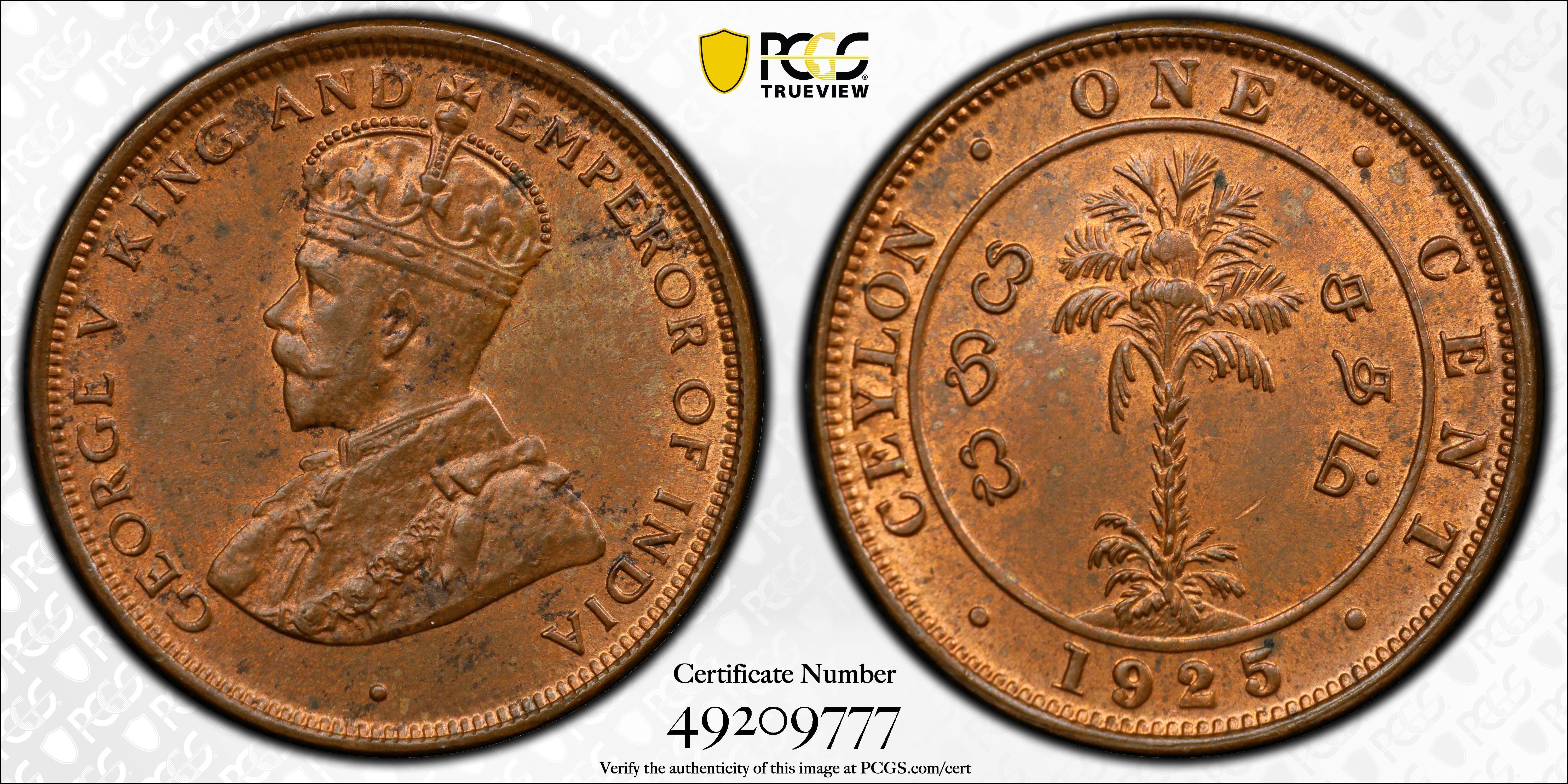 1925 1C, RB MS63RB Certification #49209777, PCGS #401101