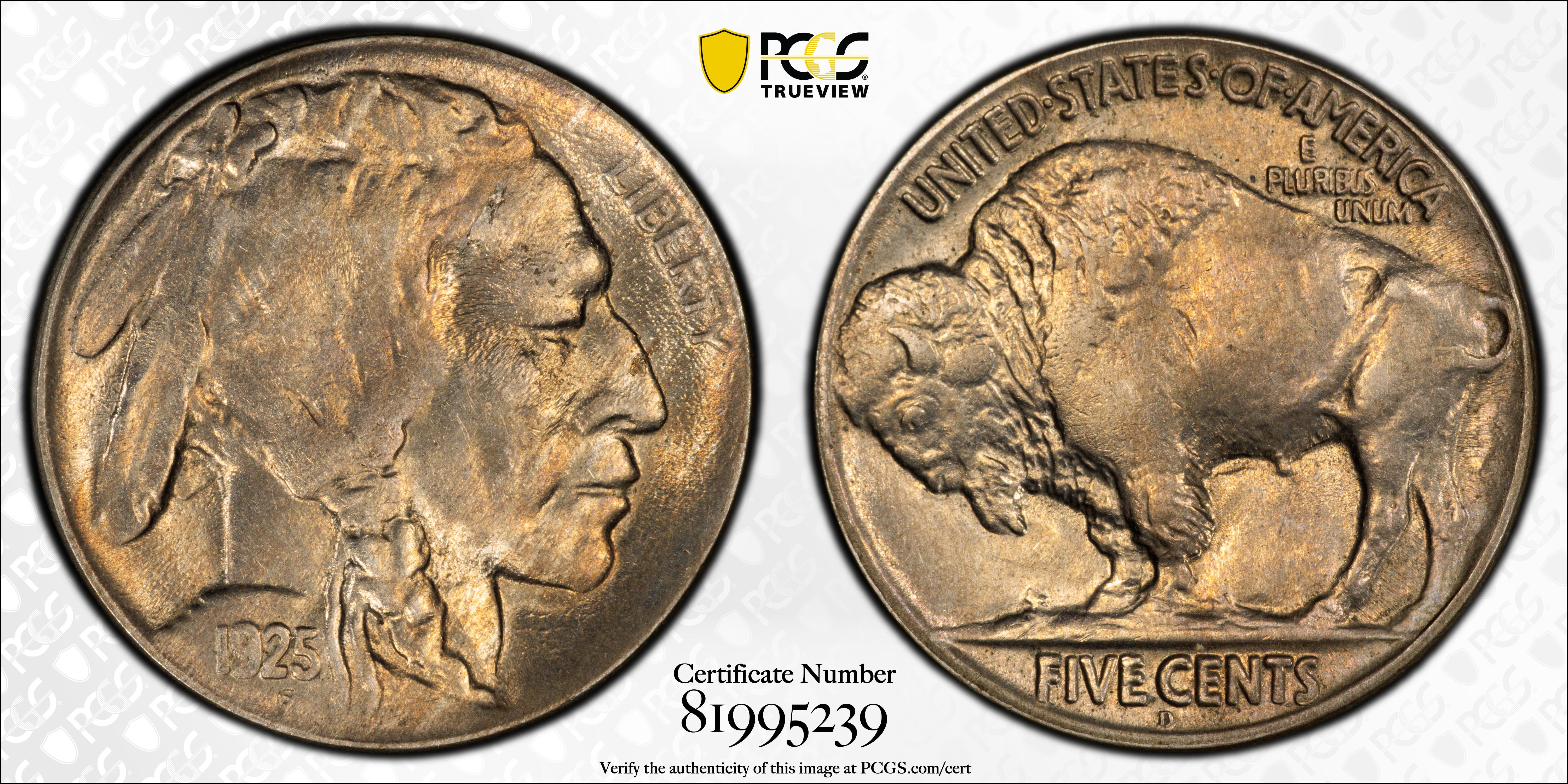 1925-D 5C MS62 Certification #81995239, PCGS #3955