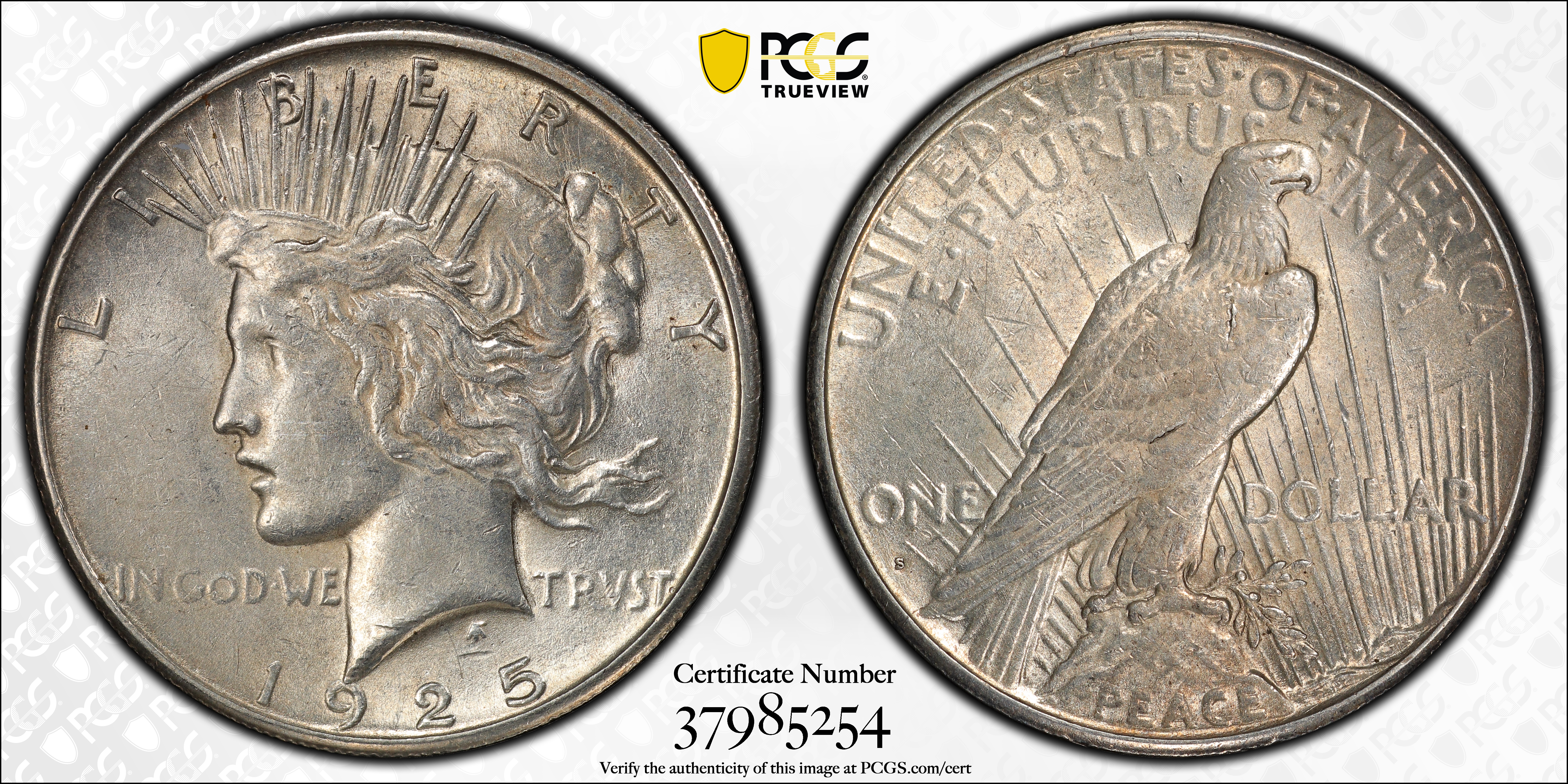 Mint State grades: Uncirculated 1925-S dollars are much more plentiful than 1924-S, despite the lower mintage of 1925-S. However, in MS-65 grade, the 1925-S is surprisingly rare. Indeed, it and the 1928-S are the two toughest varieties to find in this grade in the entire Peace dollar series.
