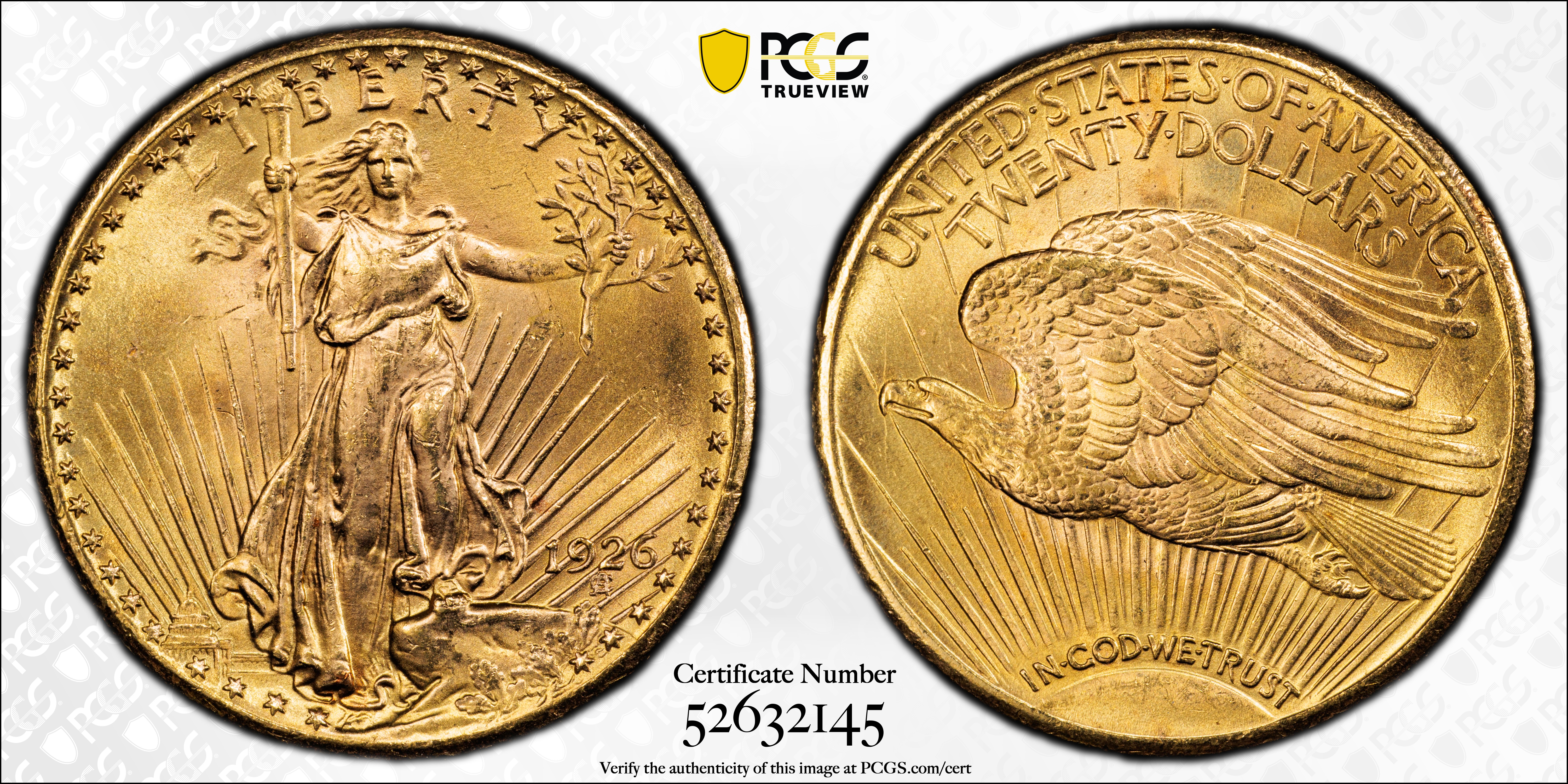 1926 $20 MS65 Certification #52632145, PCGS #9183