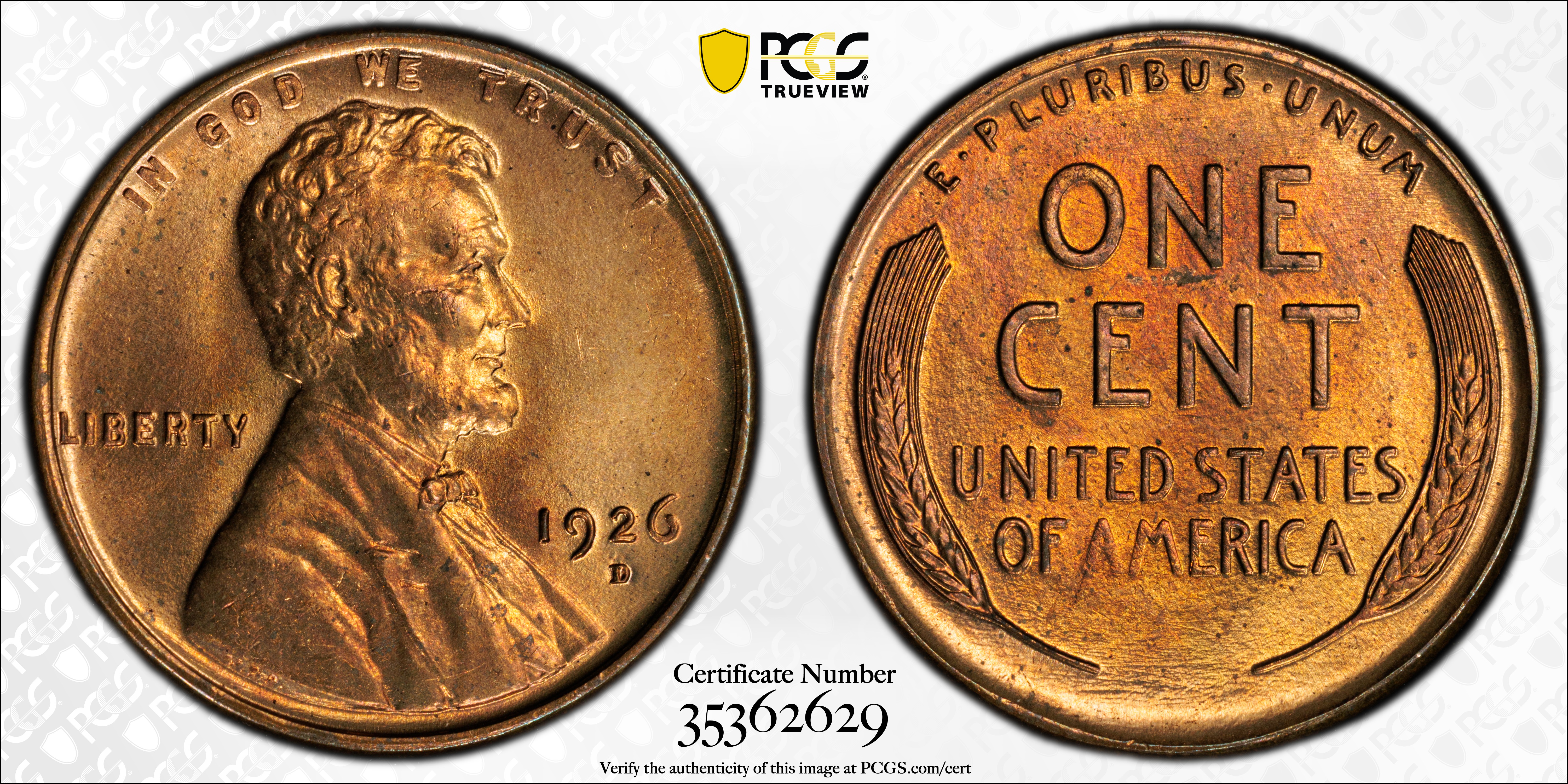 1926-D 1C, RD MS65+ RD Certification #35362629, PCGS #2572