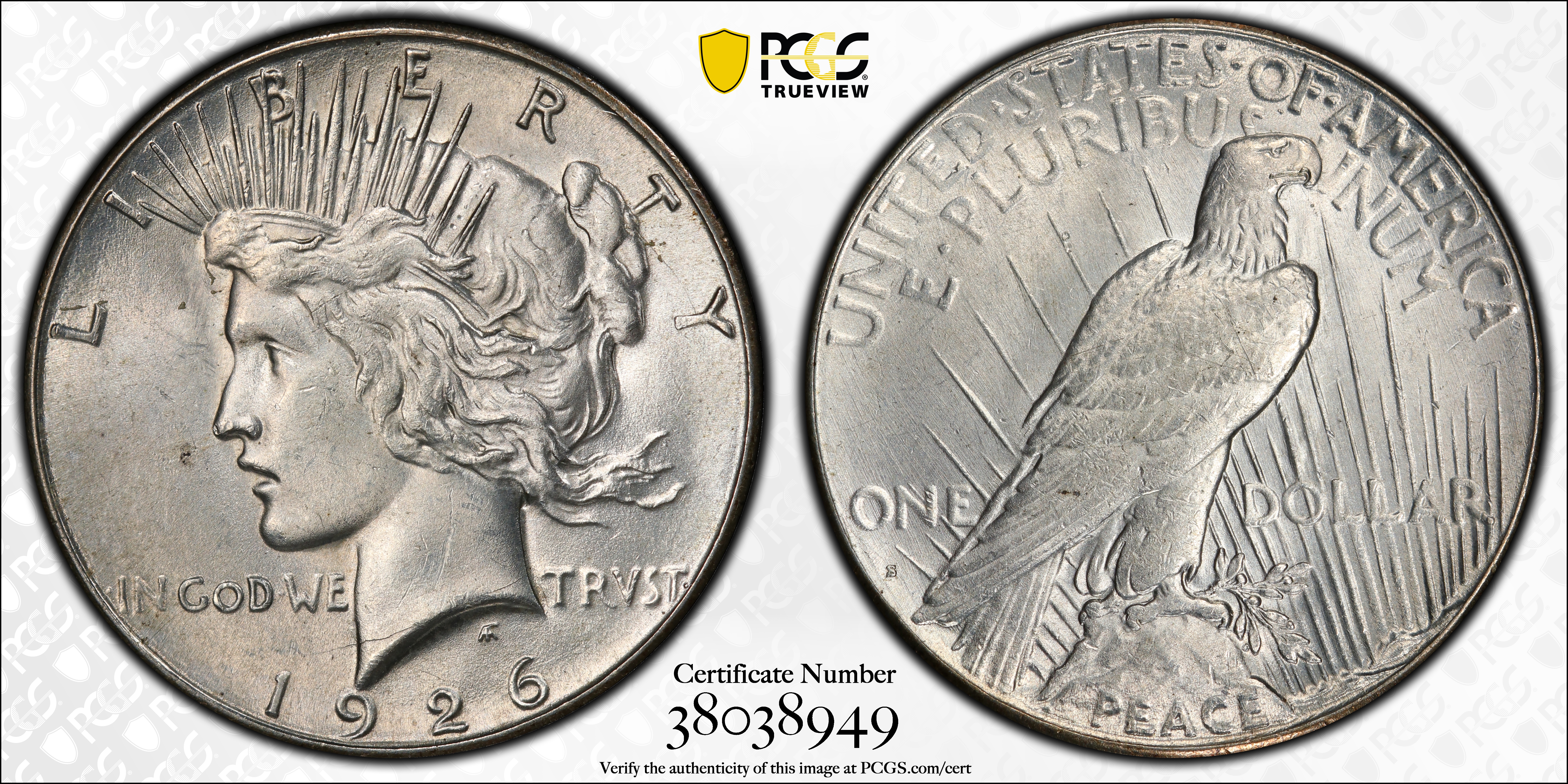 1926-S $1 VAM 4, Dot Variety TOP 50 AU58 Certification #38038949, PCGS #133774