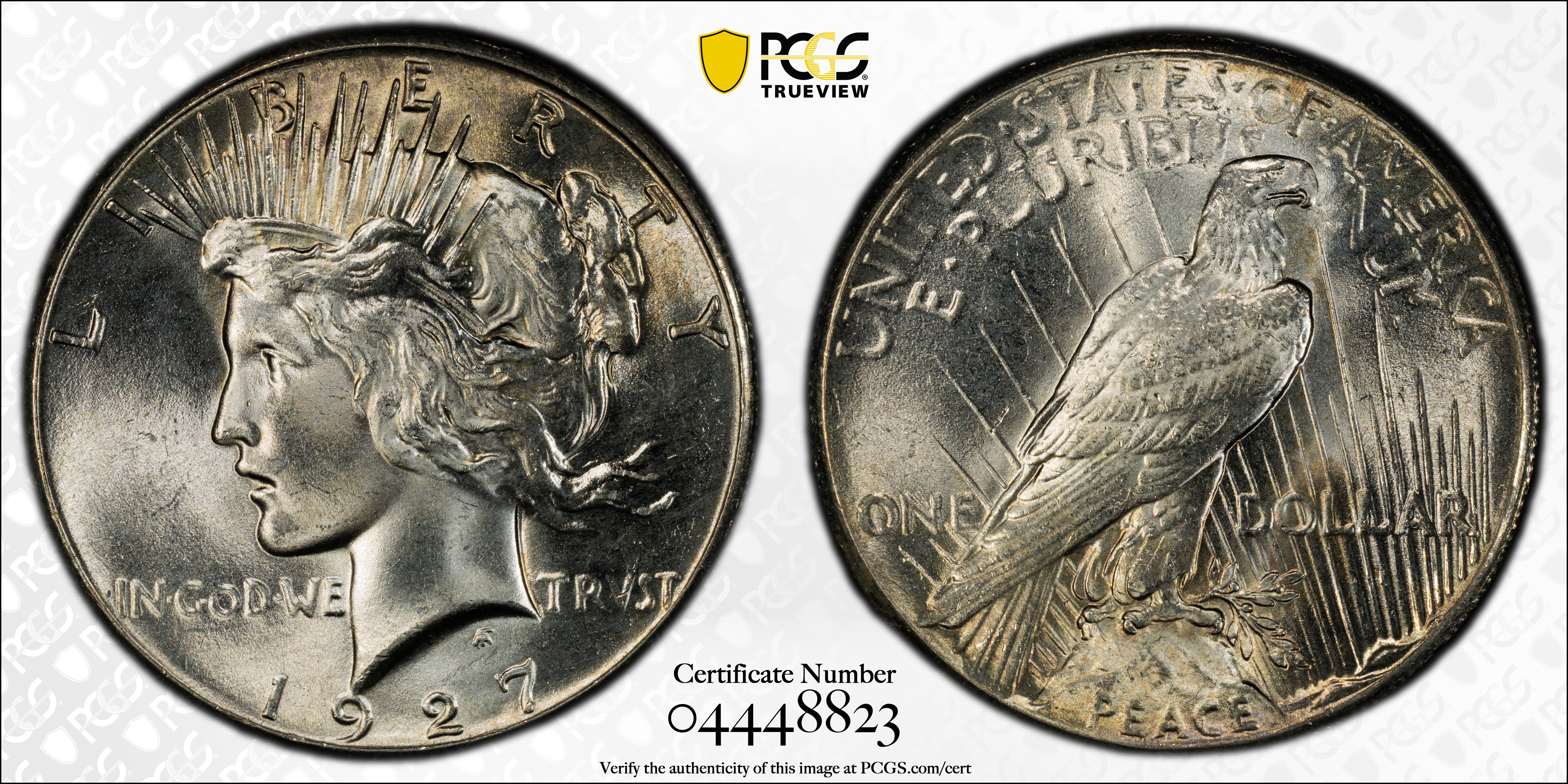 1927 $1 MS65+ Certification #04448823, PCGS #7370