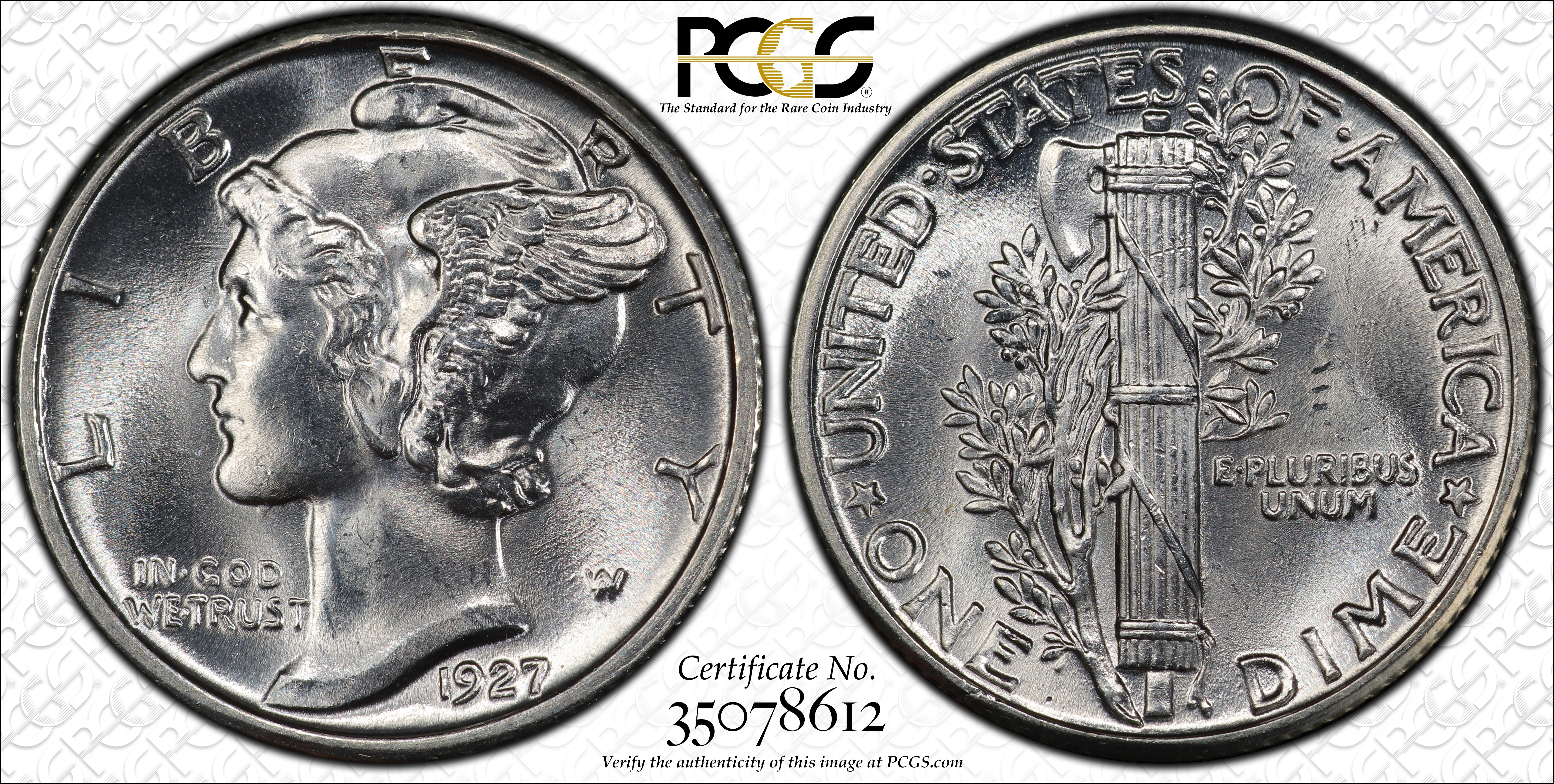 1927 10C, FB MS64FB Certification #35078612, PCGS #4961