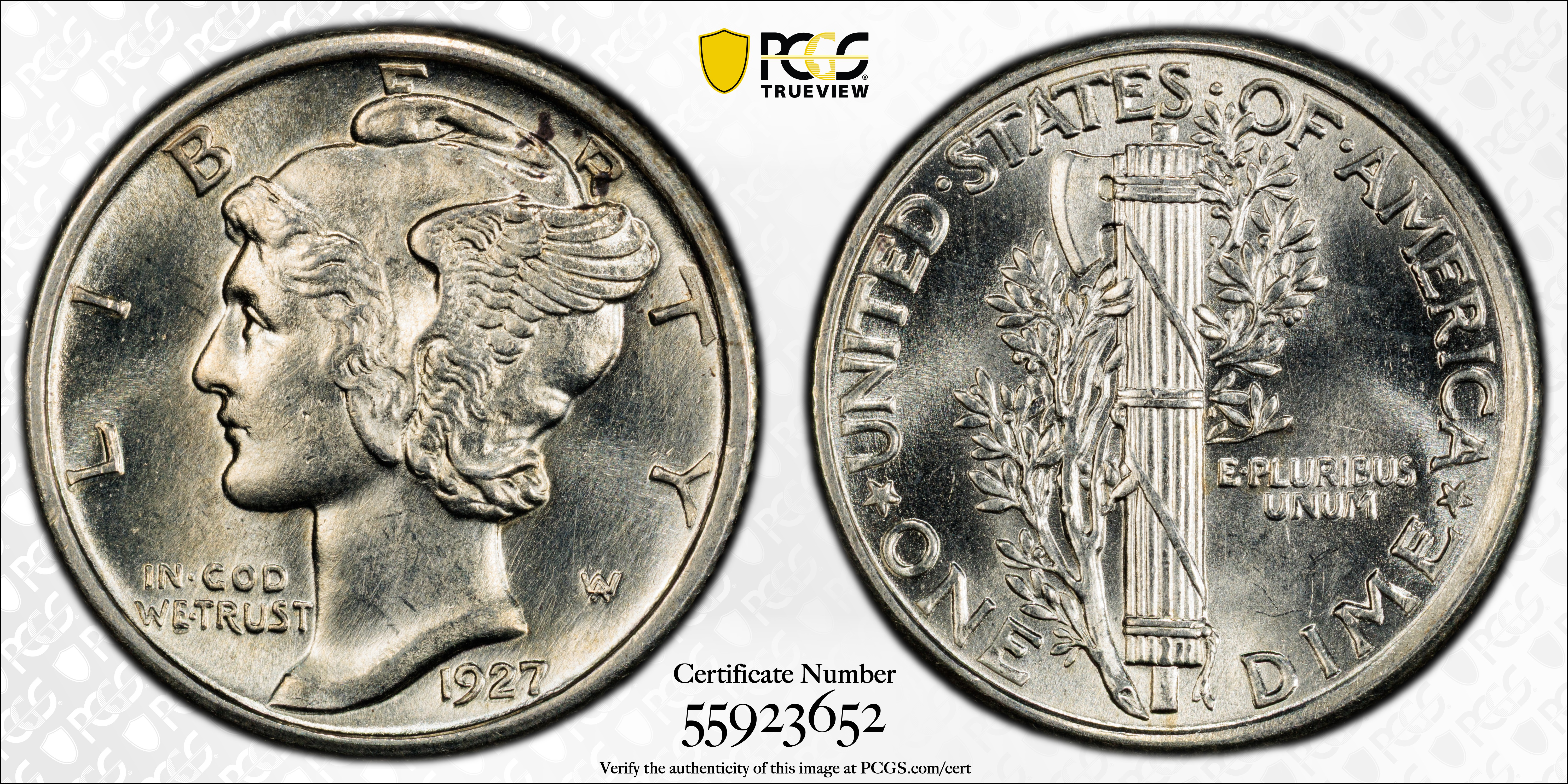 1927 10C, FB MS63FB Certification #55923652, PCGS #4961