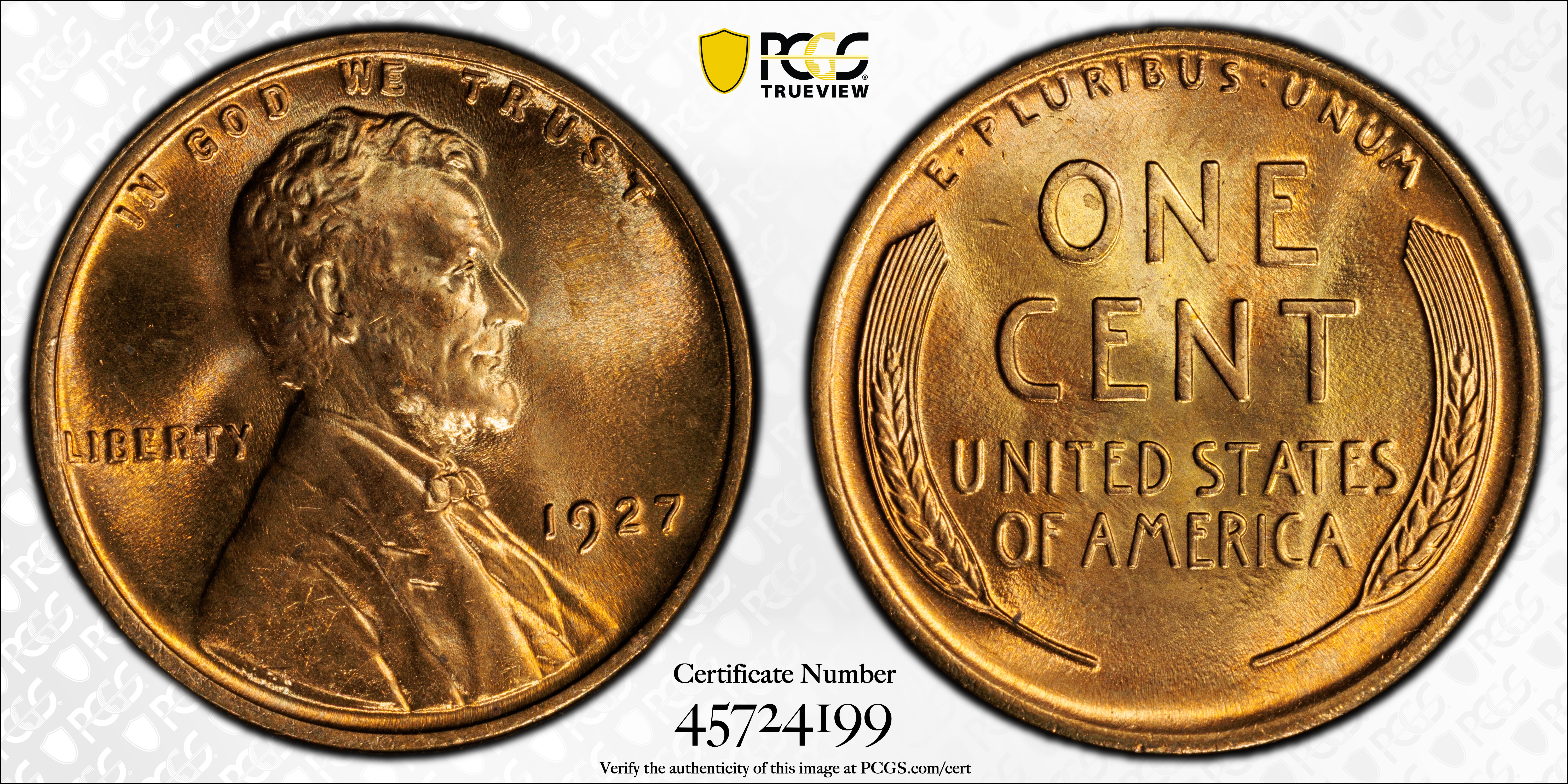 1927 1C, RD MS67RD Certification #45724199, PCGS #2578