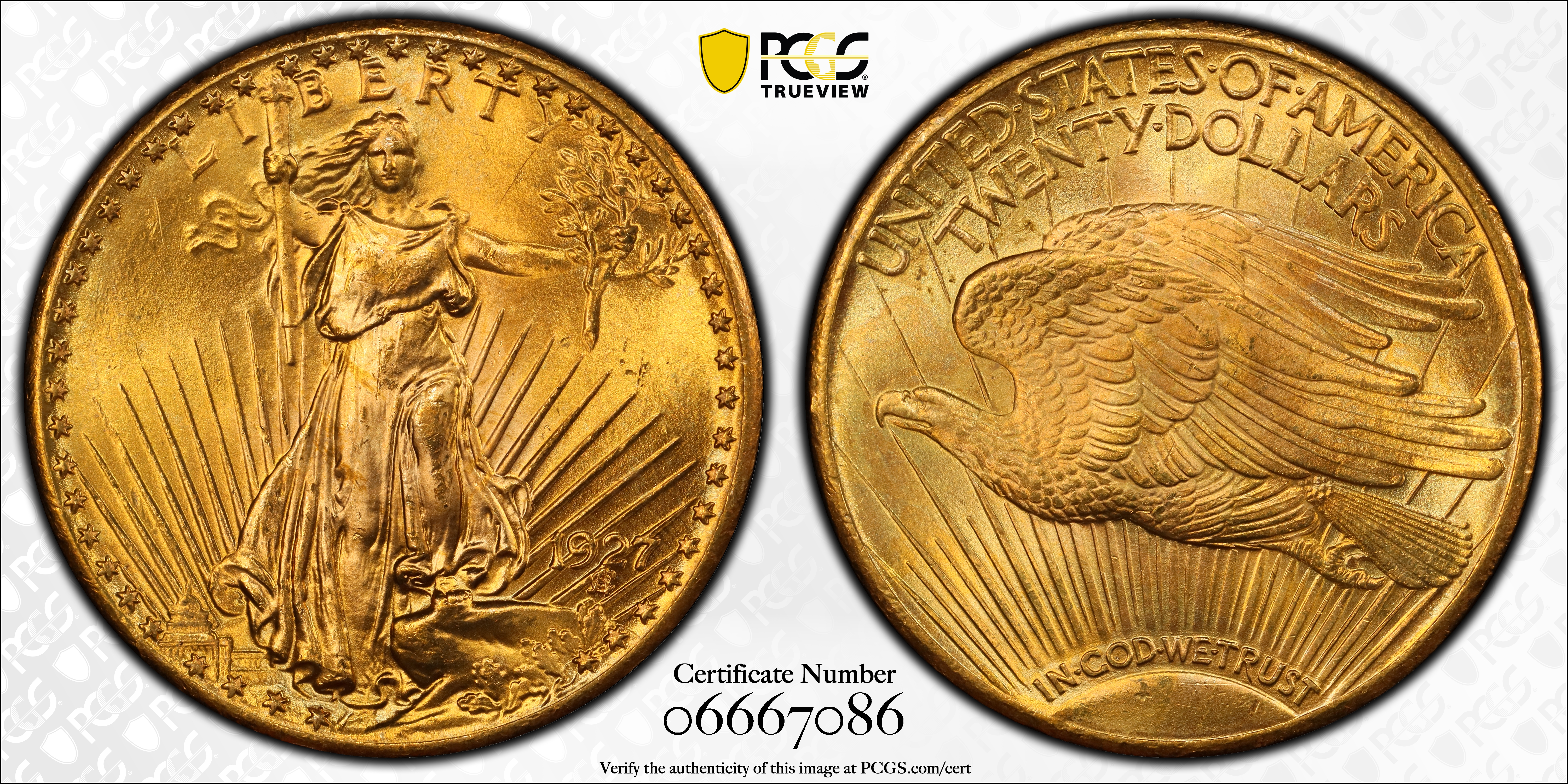 1927 $20 MS65+ Certification #06667086, PCGS #9186