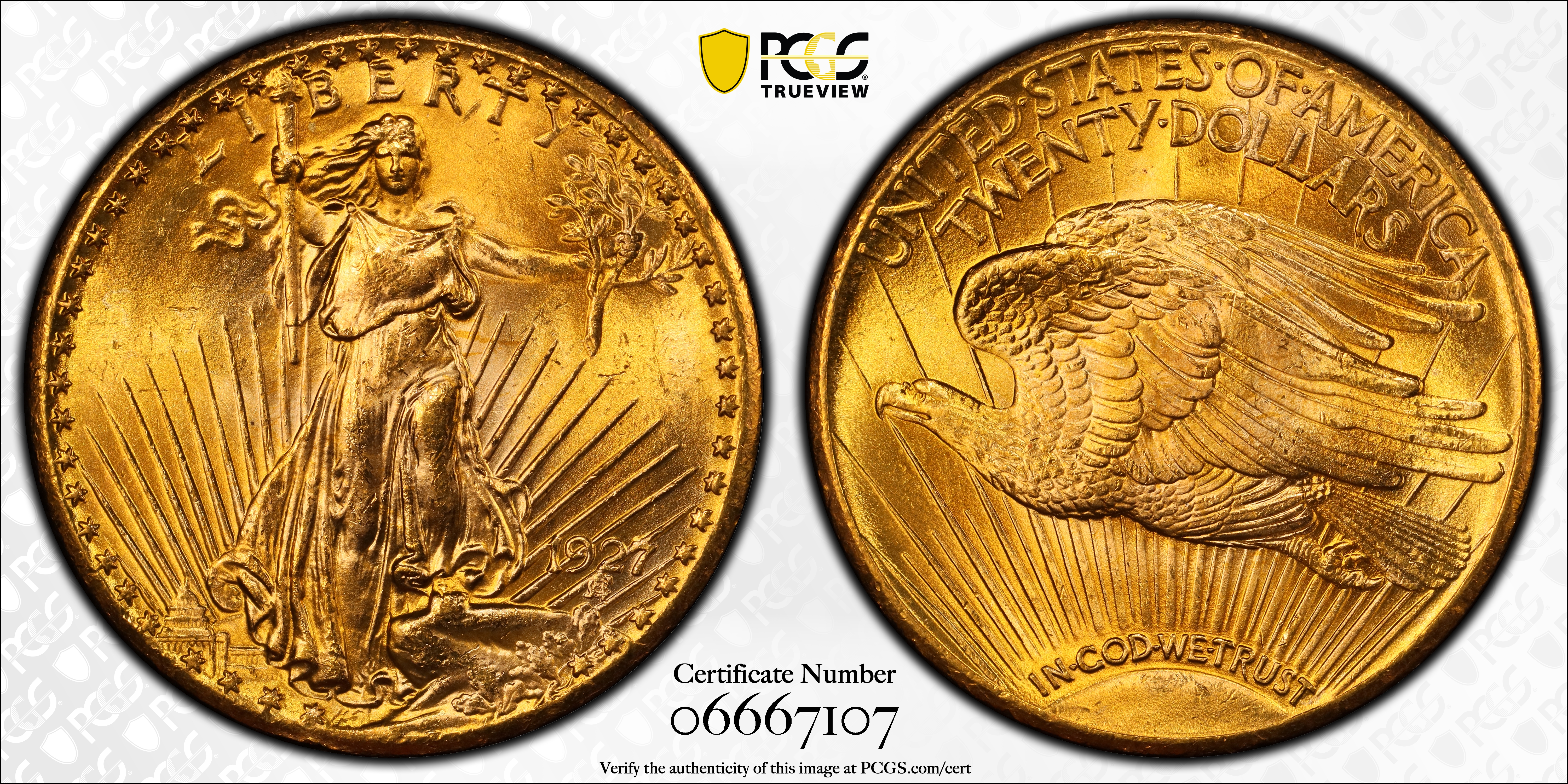 The 1927 is the second most common Saint-Gaudens double eagle after the 1924. It is readily available in relatively large quantities in MS-64 or lower Mint State grades and even full gems are readily available at any time. I have seen numerous pieces over the years that have graded better than MS-65, and there are even a few around that could reasonably be termed vitrually perfect.