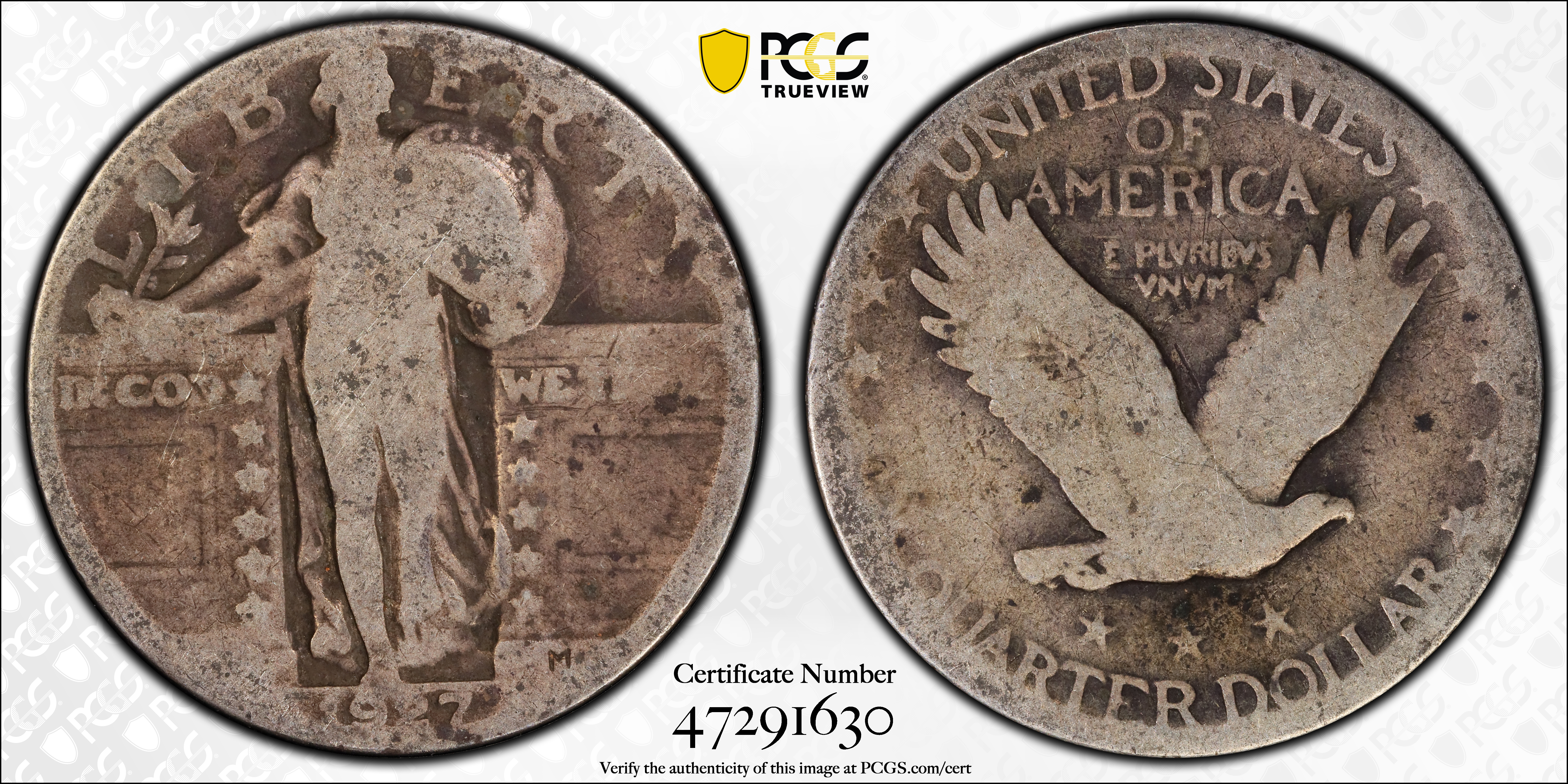 1927 25C AG3 Certification #47291630, PCGS #5760