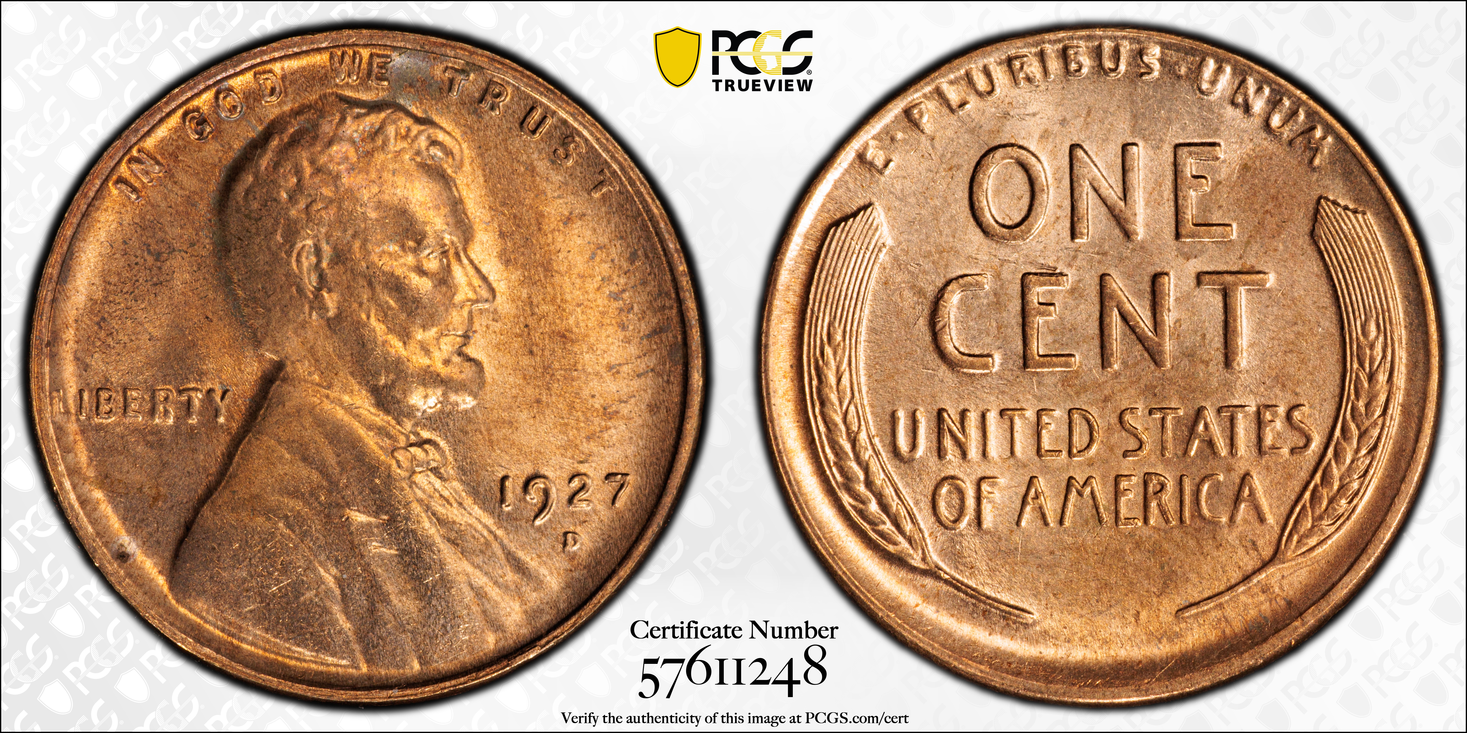 1927-D 1C, BN N1BN Certification #57611248, PCGS #2579