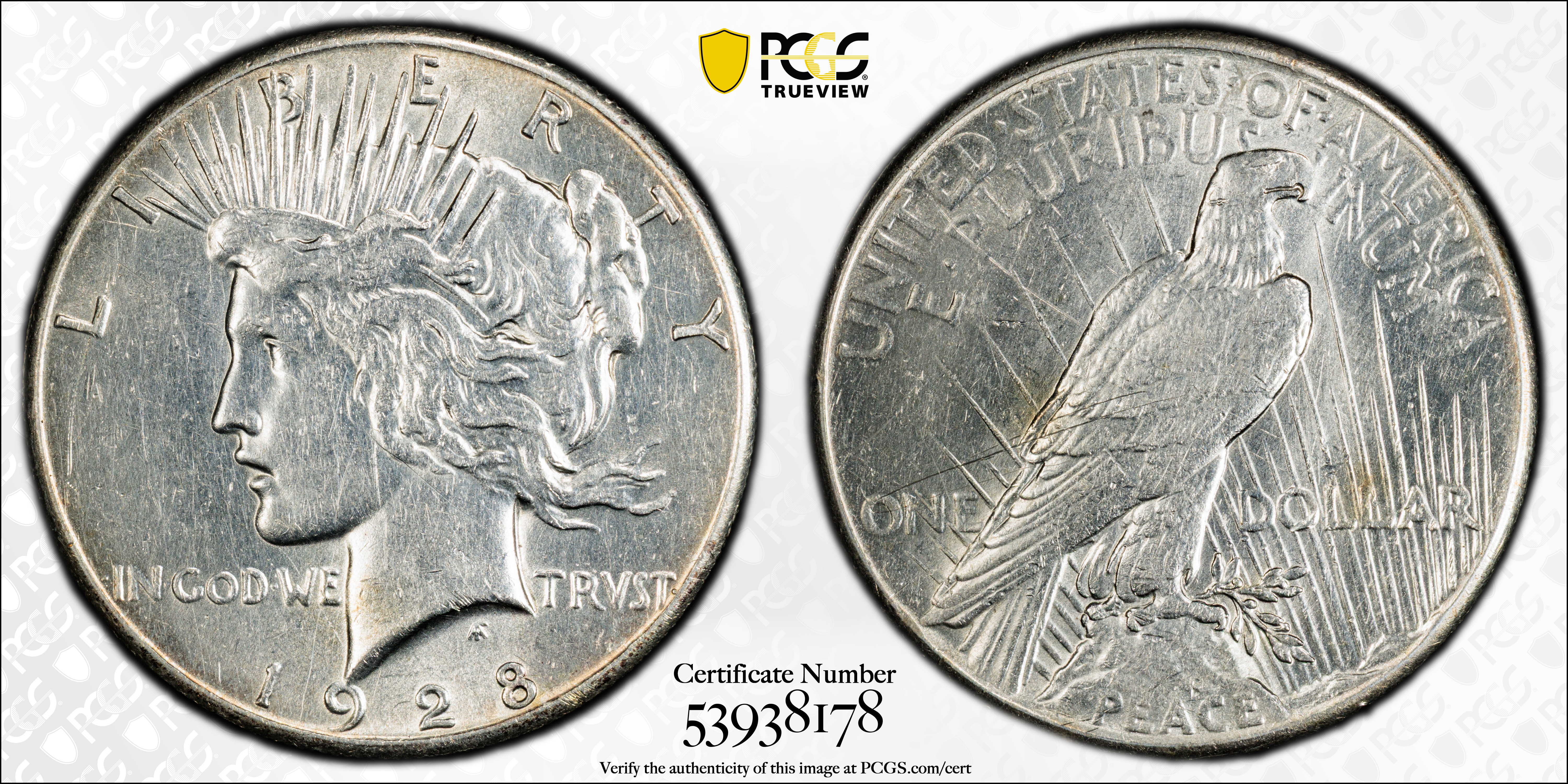 1928 $1 N1 Certification #53938178, PCGS #7373
