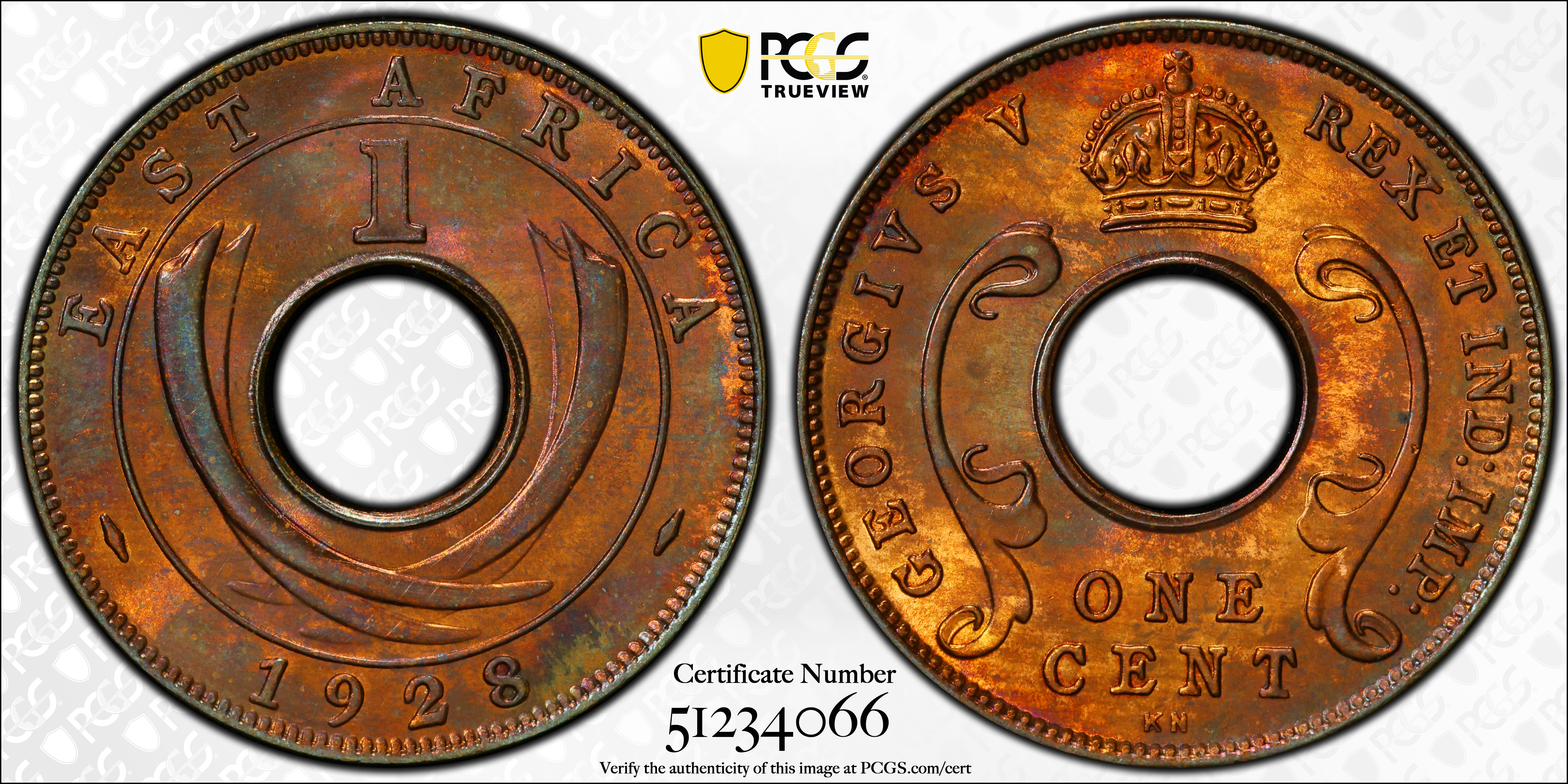 1928-KN 1C, RB SP66RB Certification #51234066, PCGS #394355