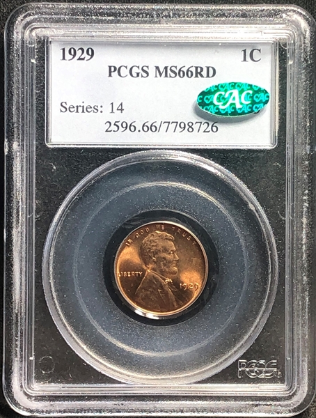 1929 1C, RD MS66RD Certification #07798726, PCGS #2596