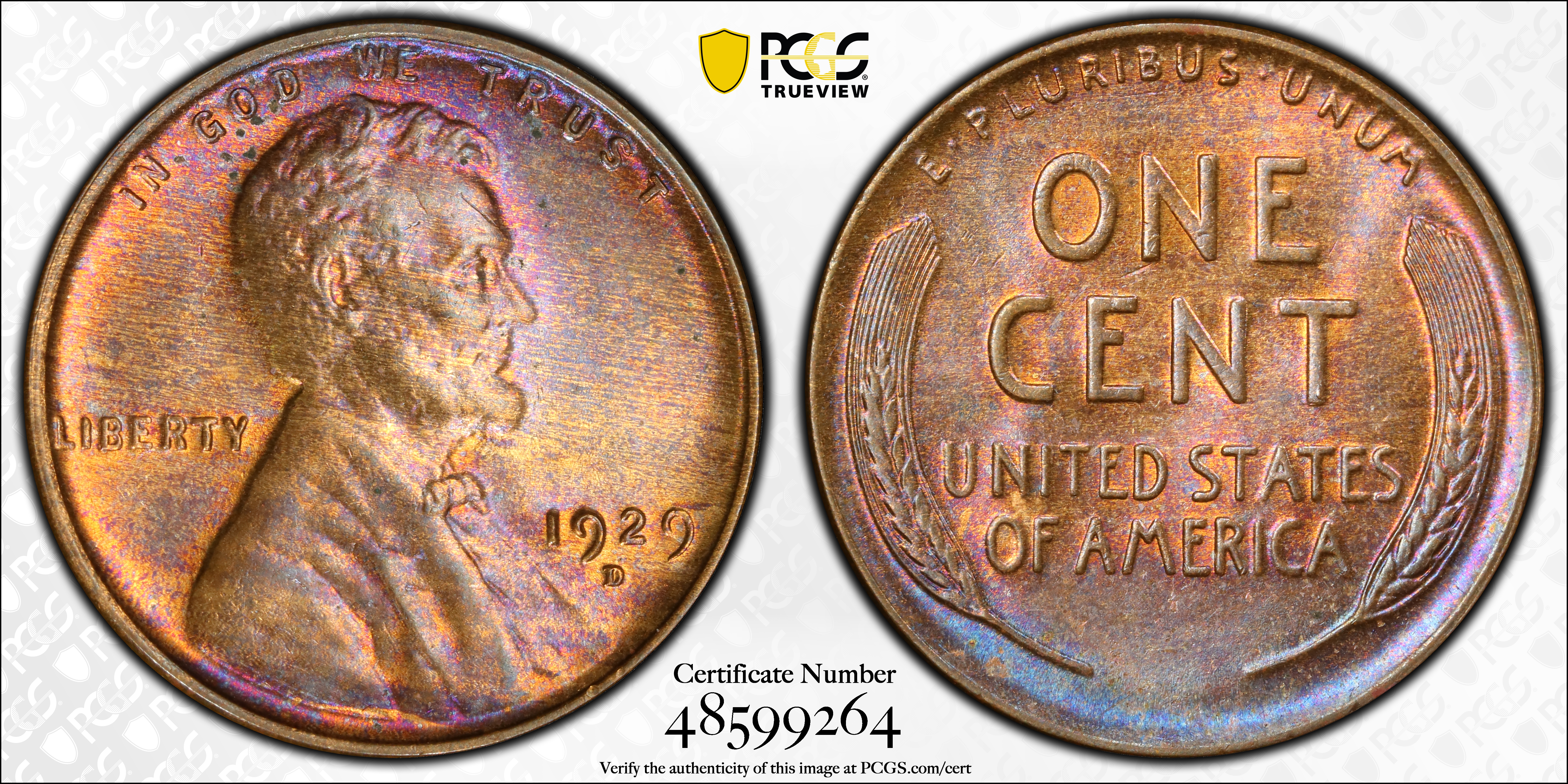 1929-D 1C, RB MS64RB Certification #48599264, PCGS #2598