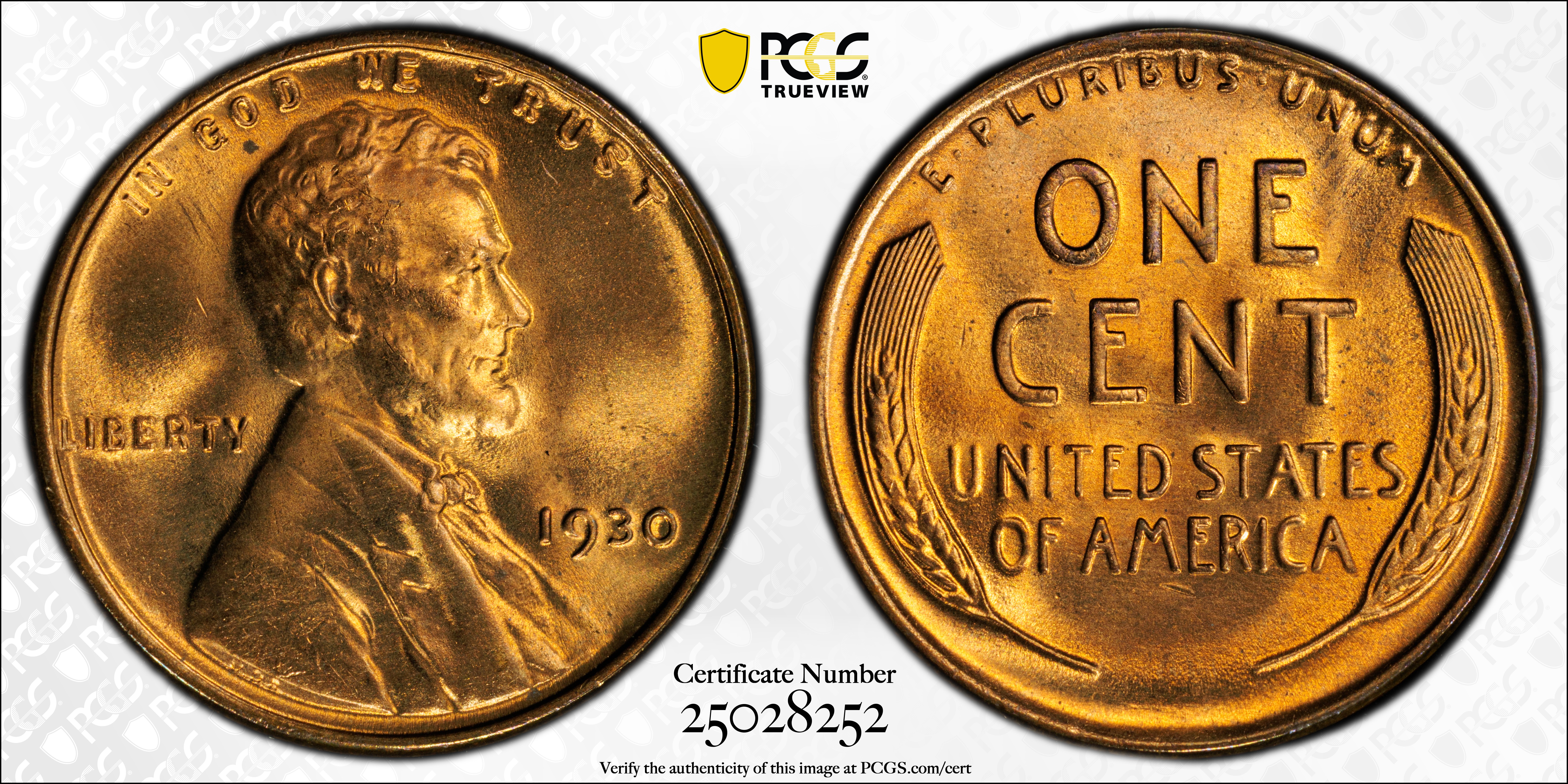 1930 1C, RD MS67RD Certification #25028252, PCGS #2605