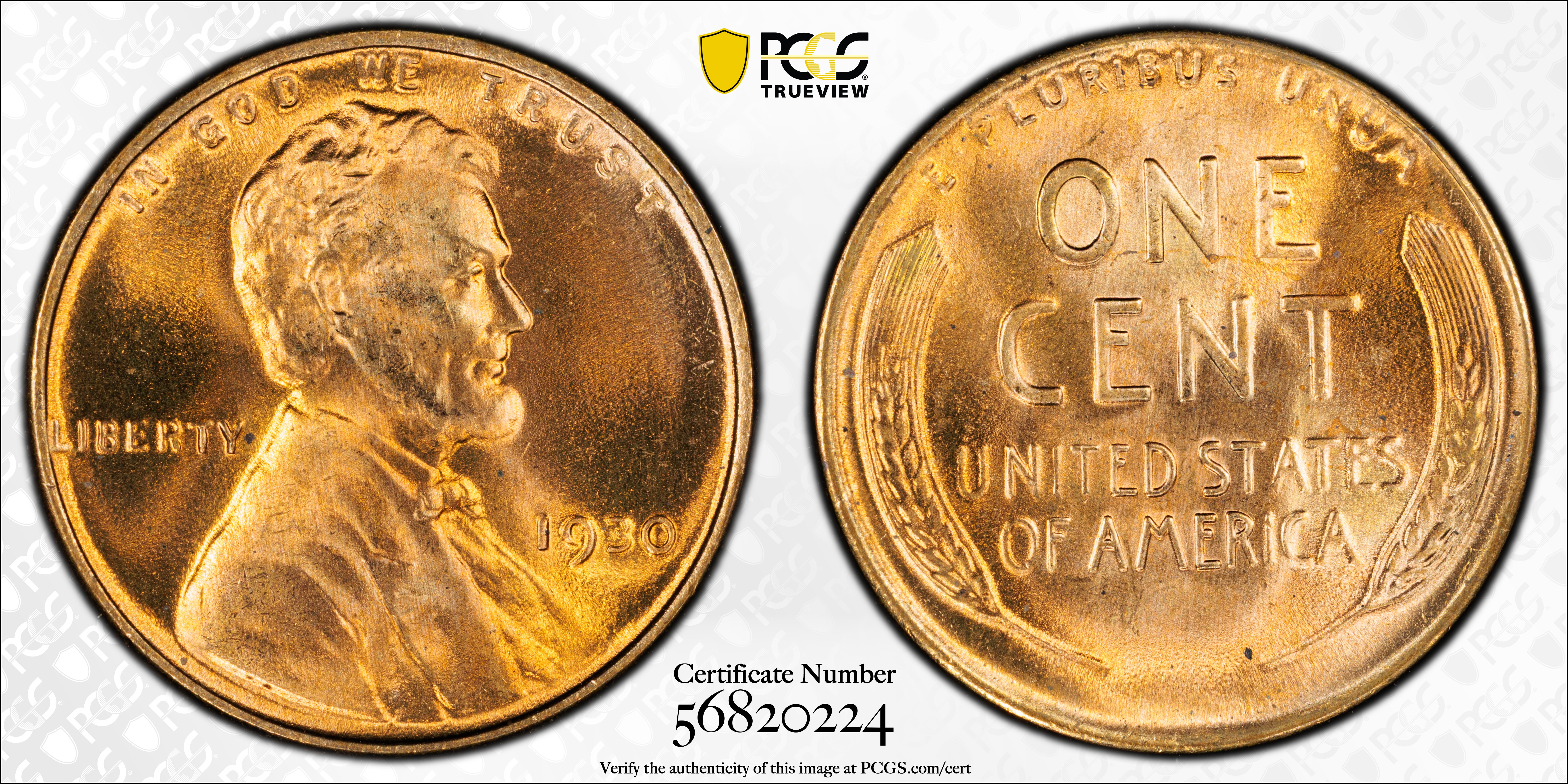 1930 1C, RD MS67RD Certification #56820224, PCGS #2605