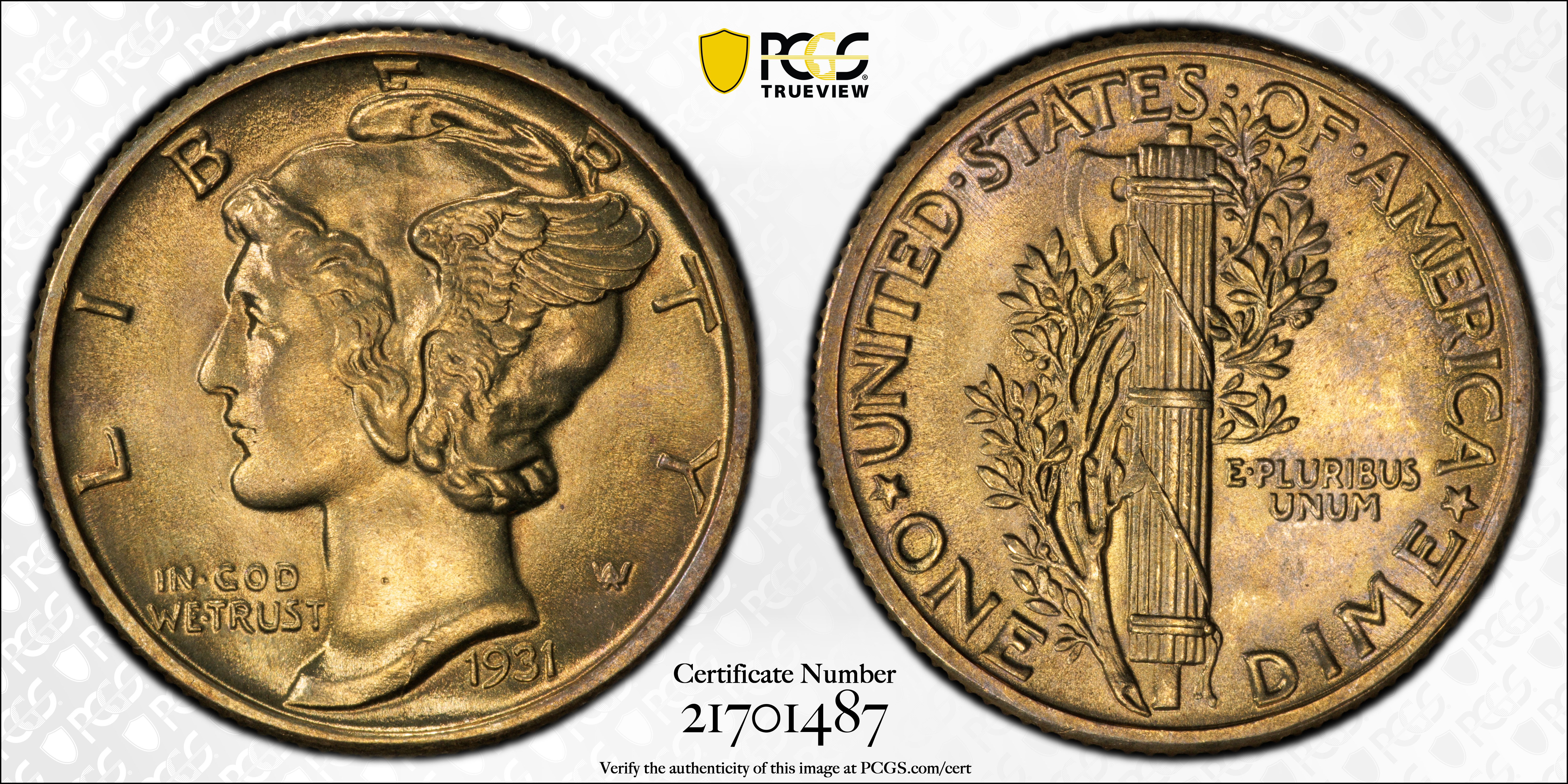 1931 10C, FB MS64FB Certification #21701487, PCGS #4983