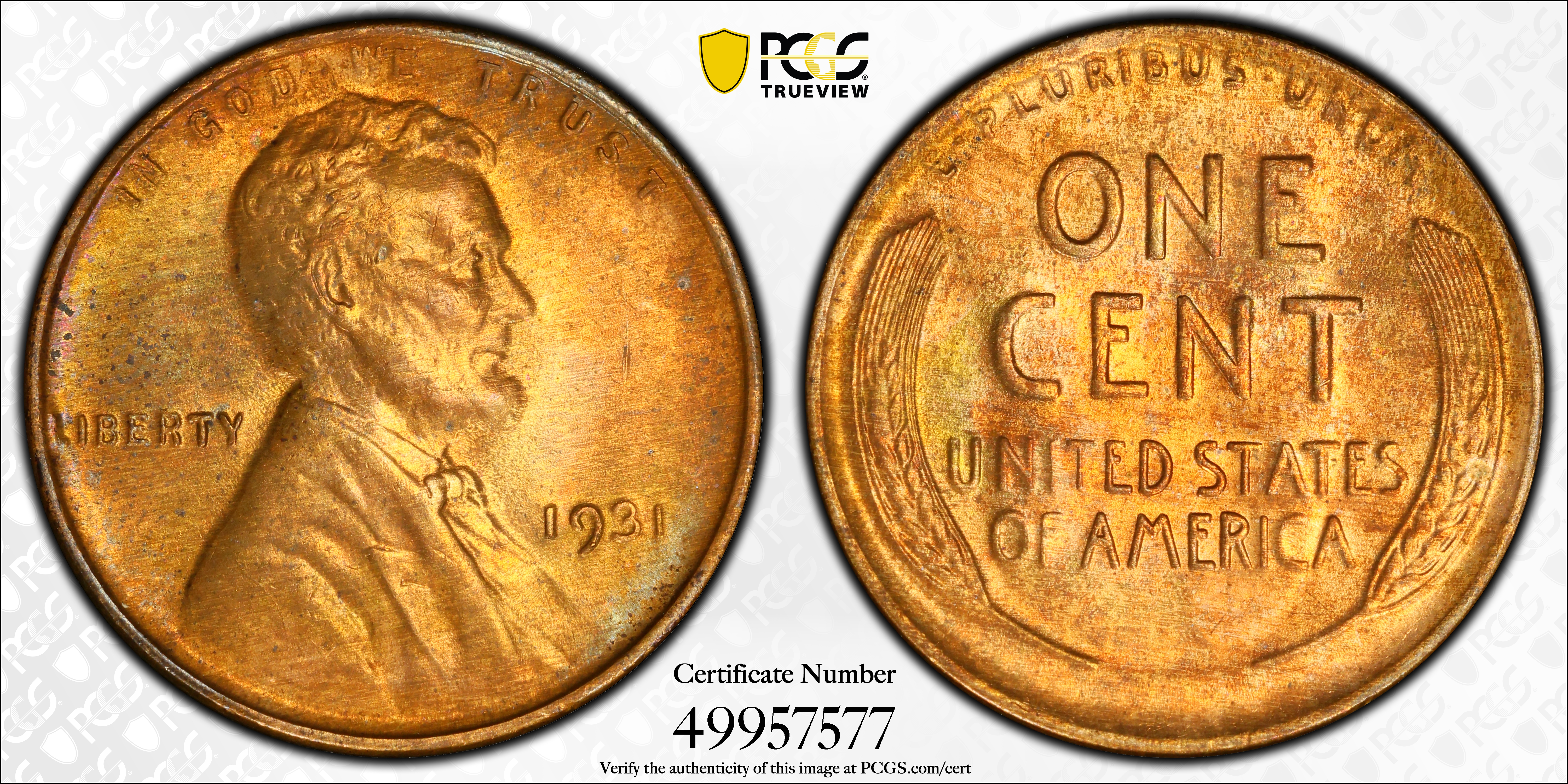 1931 1C, RB MS63RB Certification #49957577, PCGS #2613