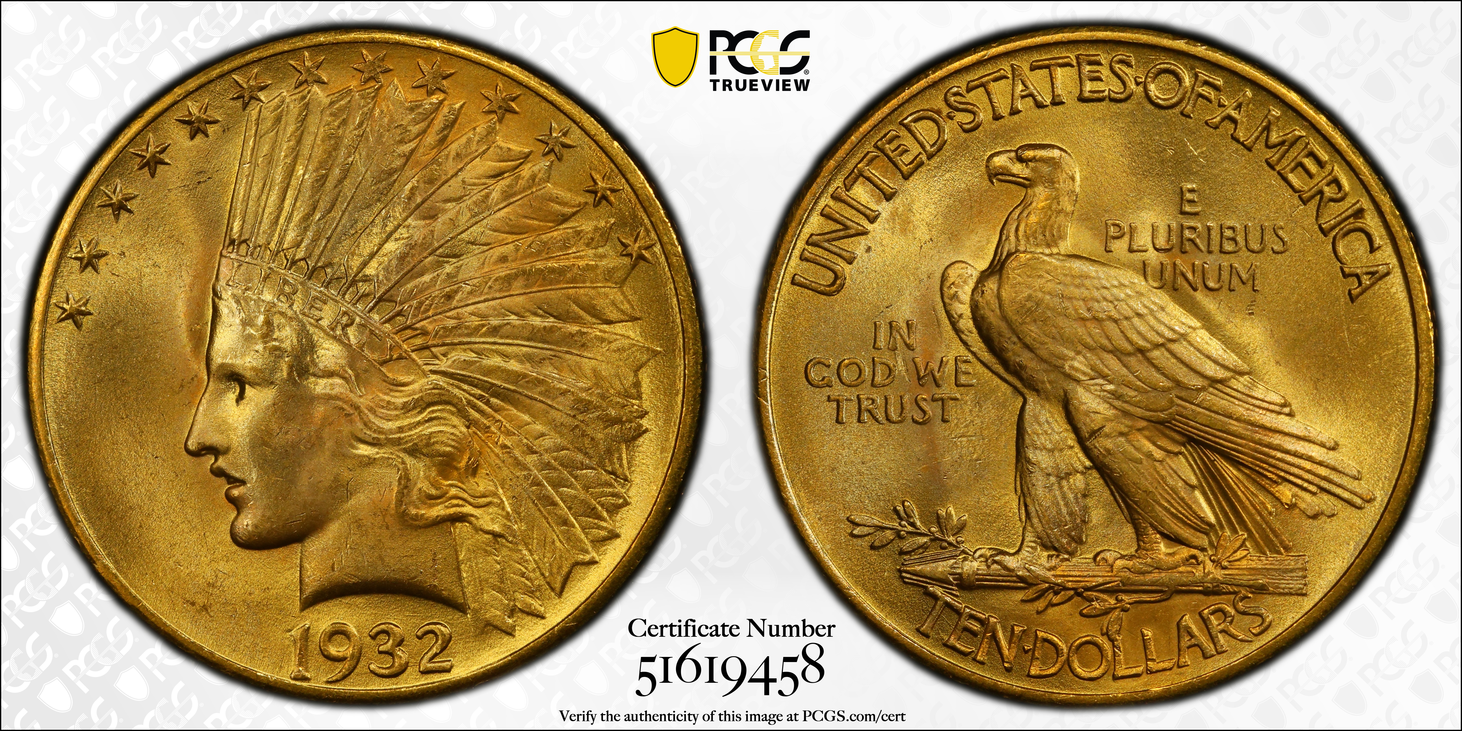 1932 $10 MS66 Certification #51619458, PCGS #8884