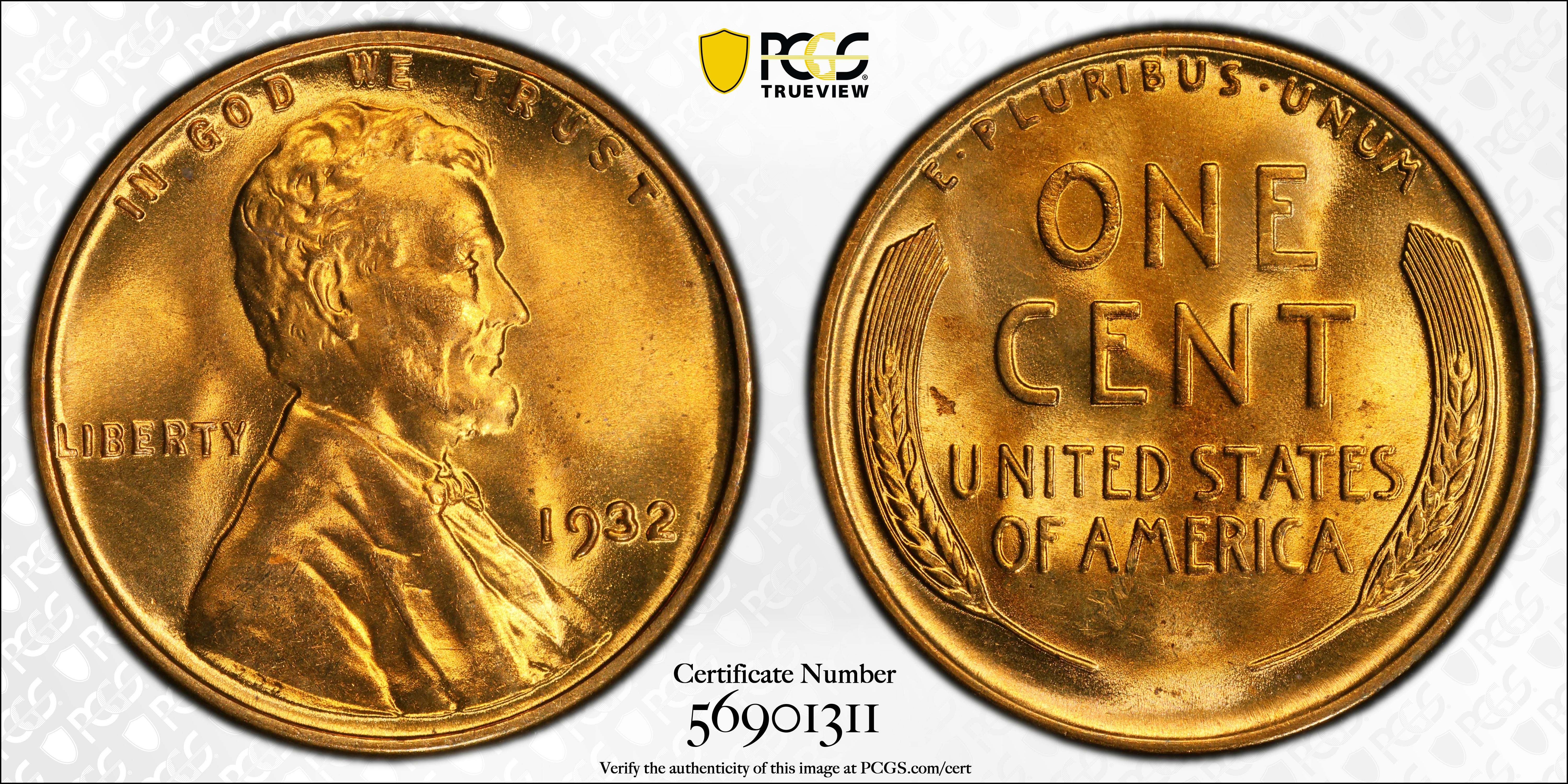 1932 1C, RD MS66RD Certification #56901311, PCGS #2623