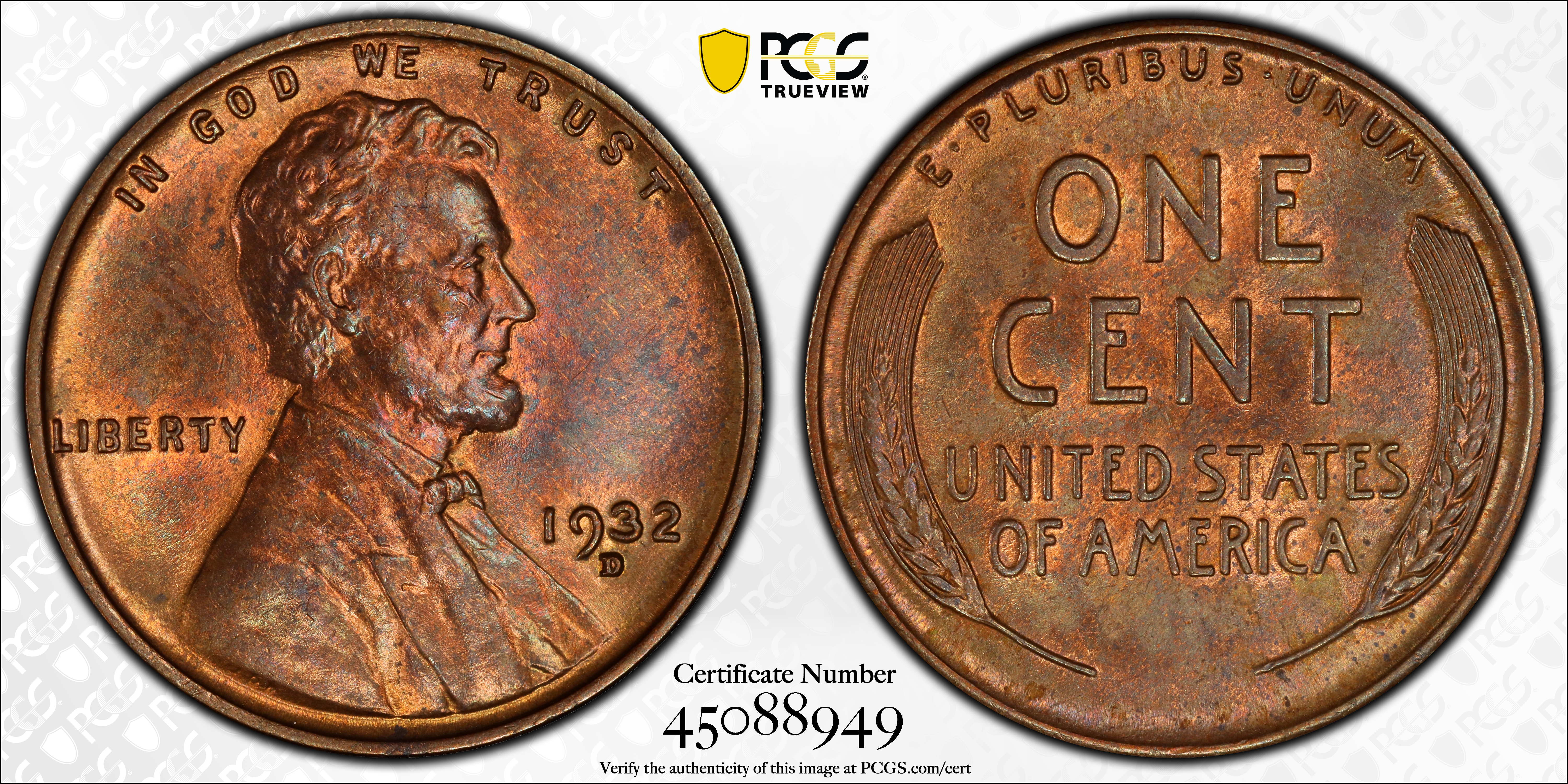 1932-D 1C, BN MS63BN Certification #45088949, PCGS #2624