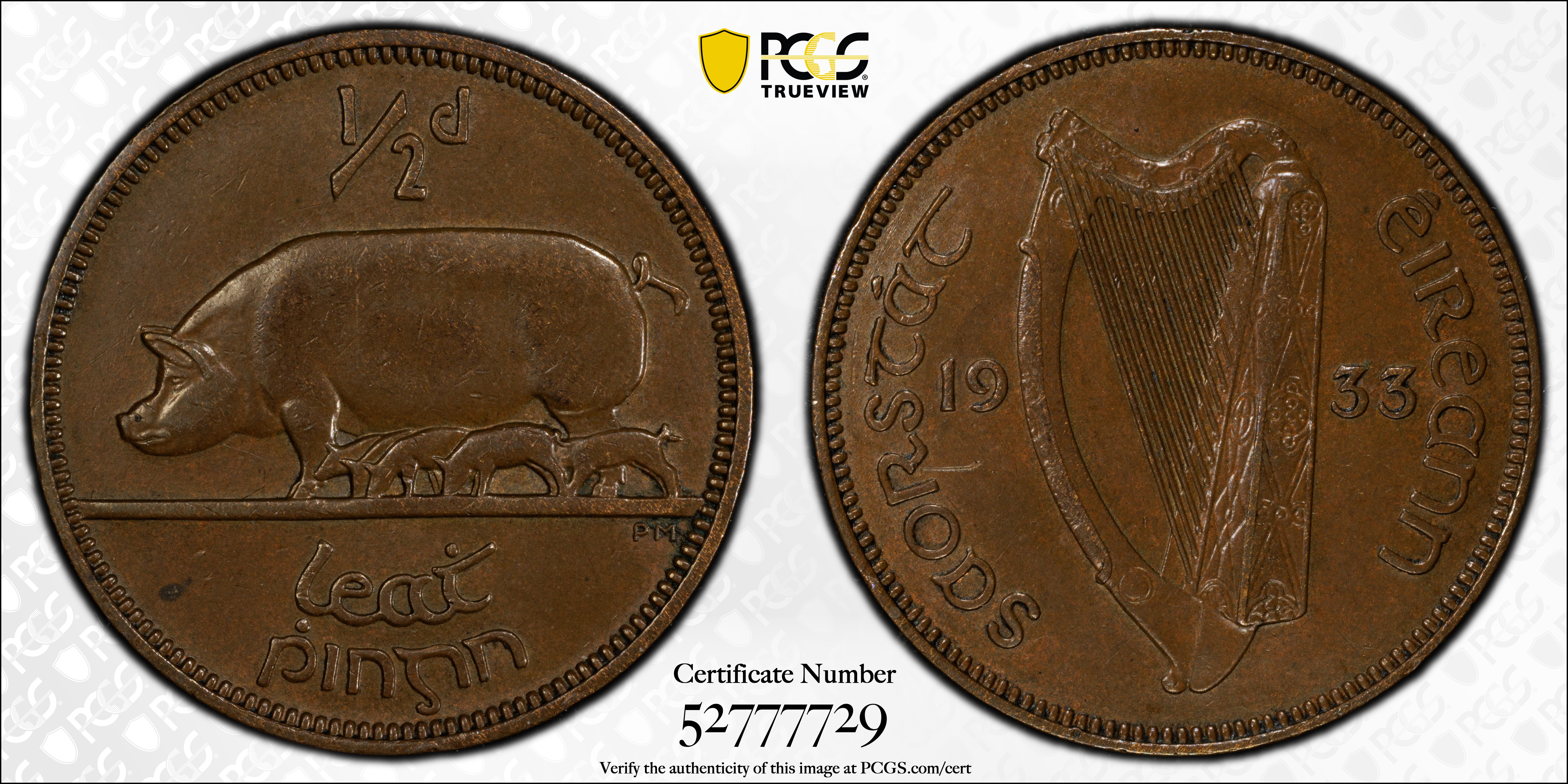 1933 1/2D, BN AU58BN Certification #52777729, PCGS #827037