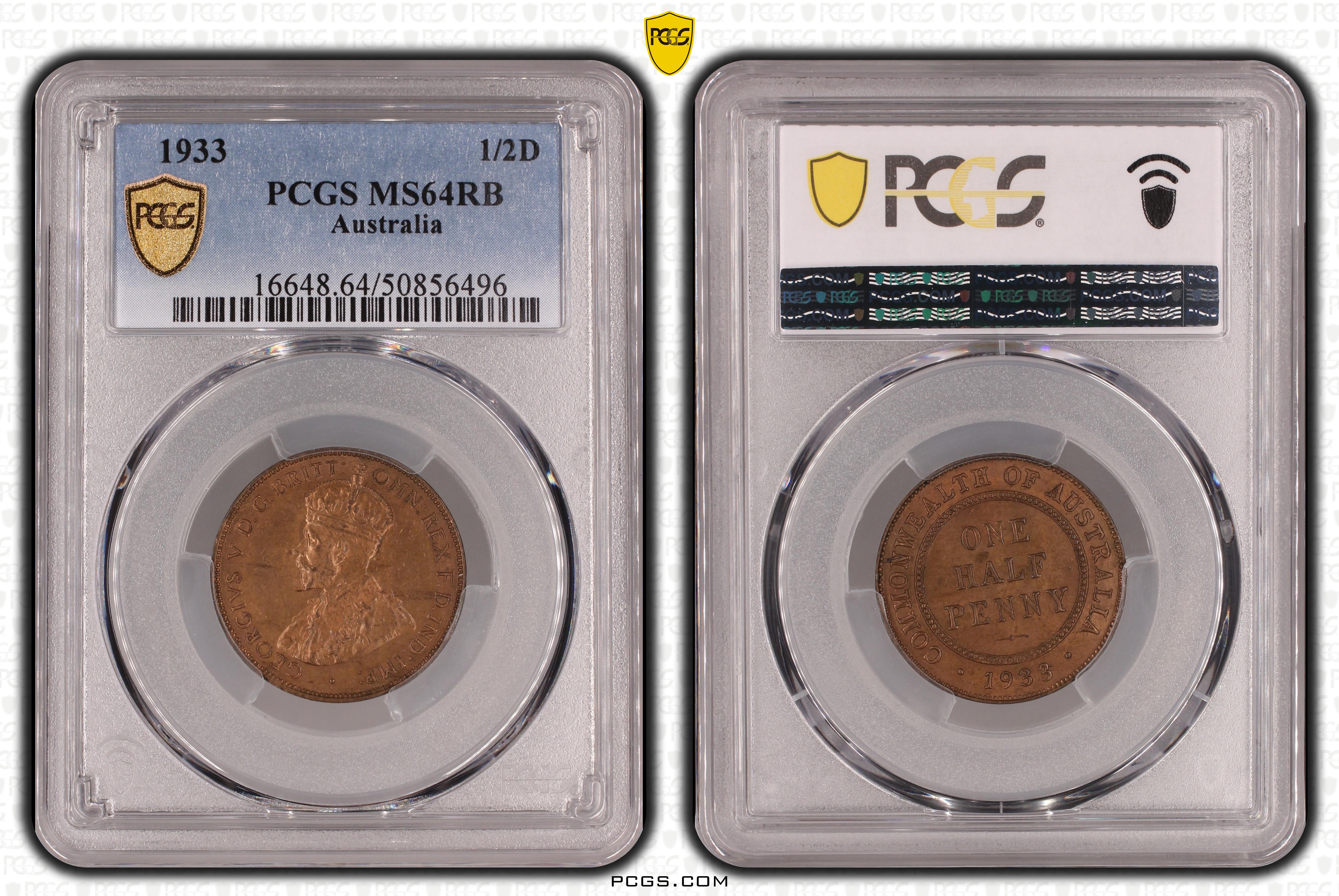 1933 1/2D, RB MS64RB Certification #50856496, PCGS #16648